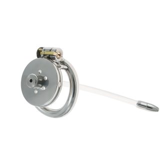 Stainless Steel Flat Short Chastity Device with Flexible Tube for Men