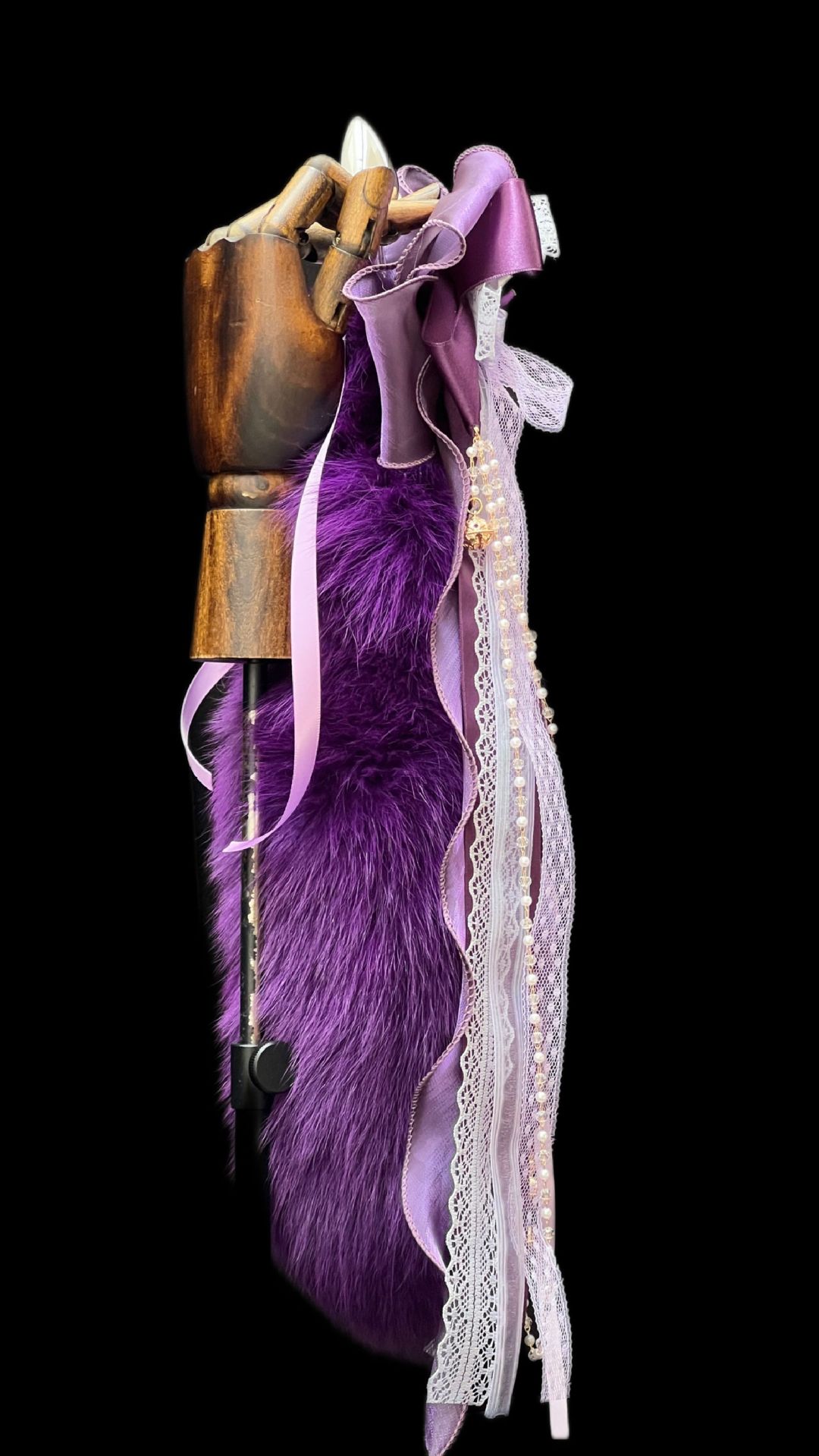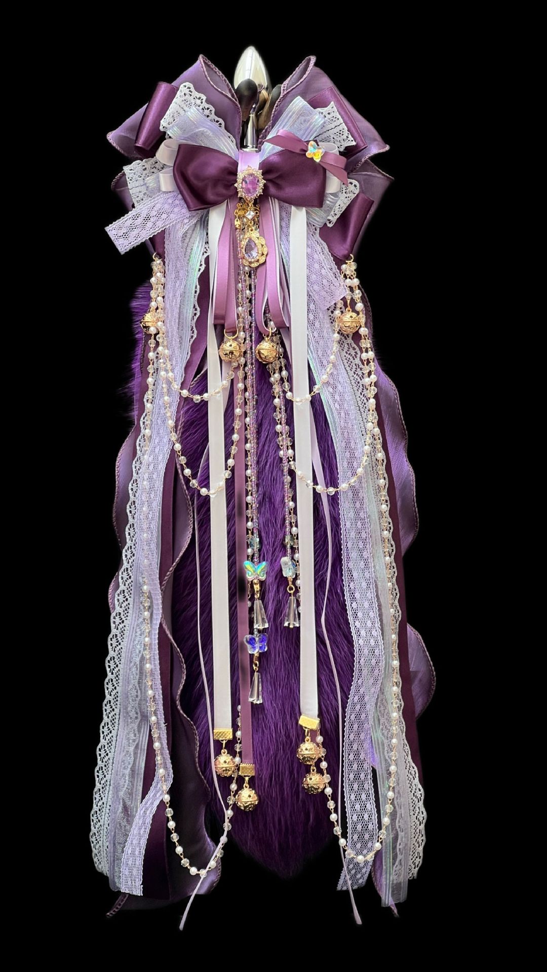 Deep Purple Fox Fur Tail Anal Plug with Bowknot Bell – Luxury Craftsmanship