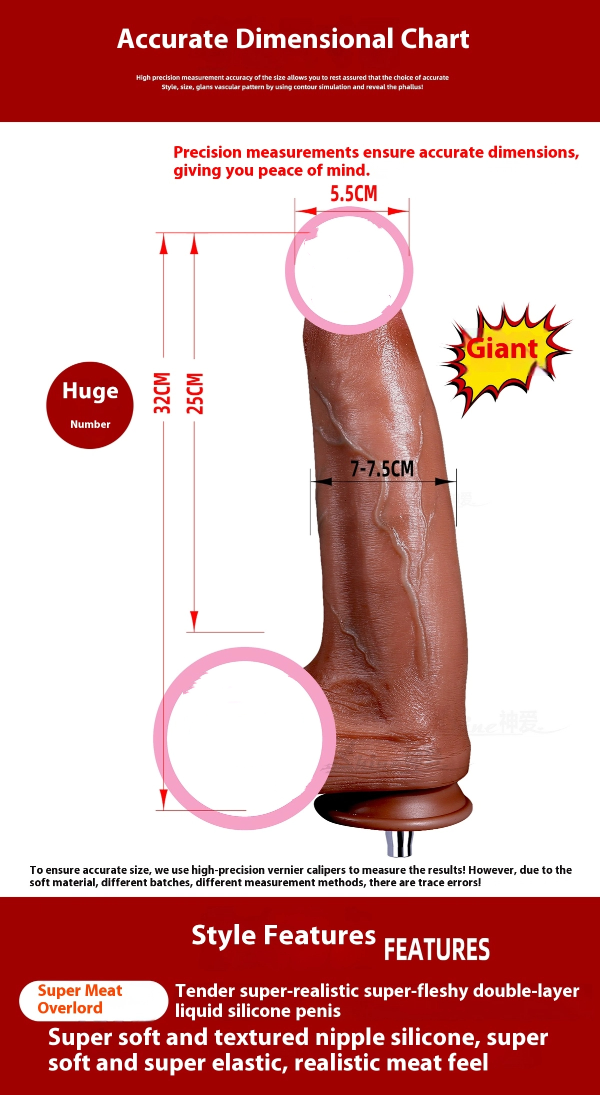 Ultra-realistic, extra-large (7-7.5cm) silicone pleasure object featuring a dual-layer design for unparalleled softness and a lifelike, fleshy feel. Offers intense sensations and a uniquely satisfying experience due to its size and realistic construction.