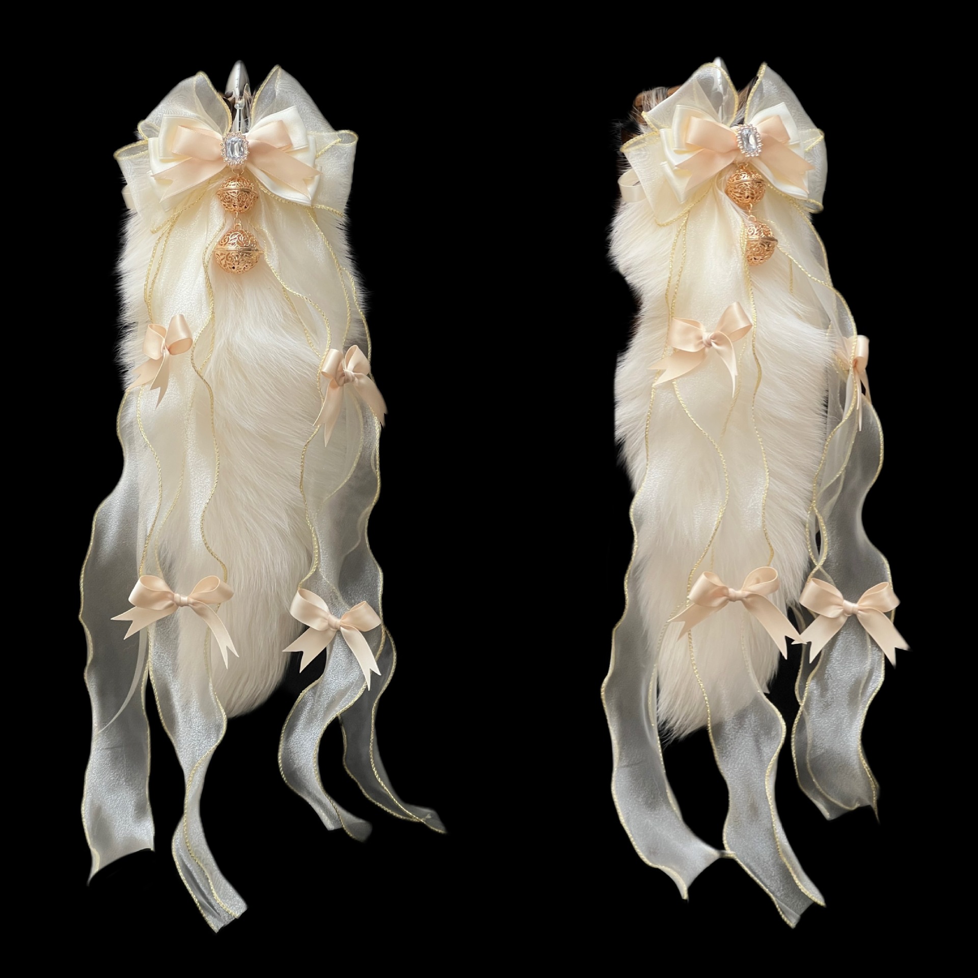 40CM cream white fox real fur tail butt plug removable smsex toys handmade bow Palace Bell