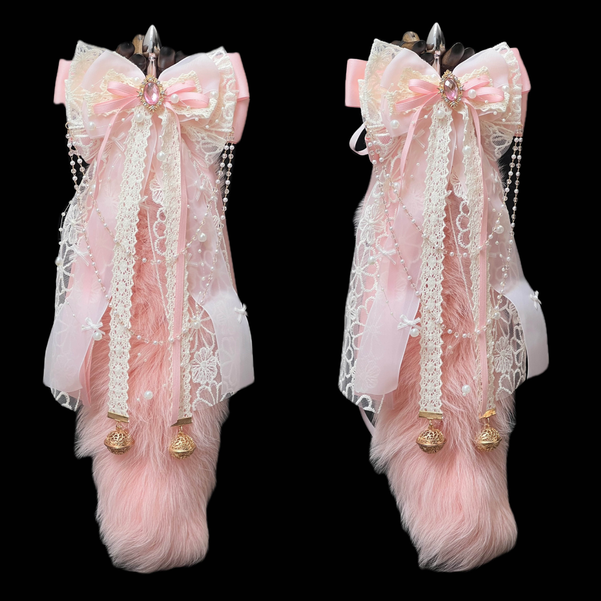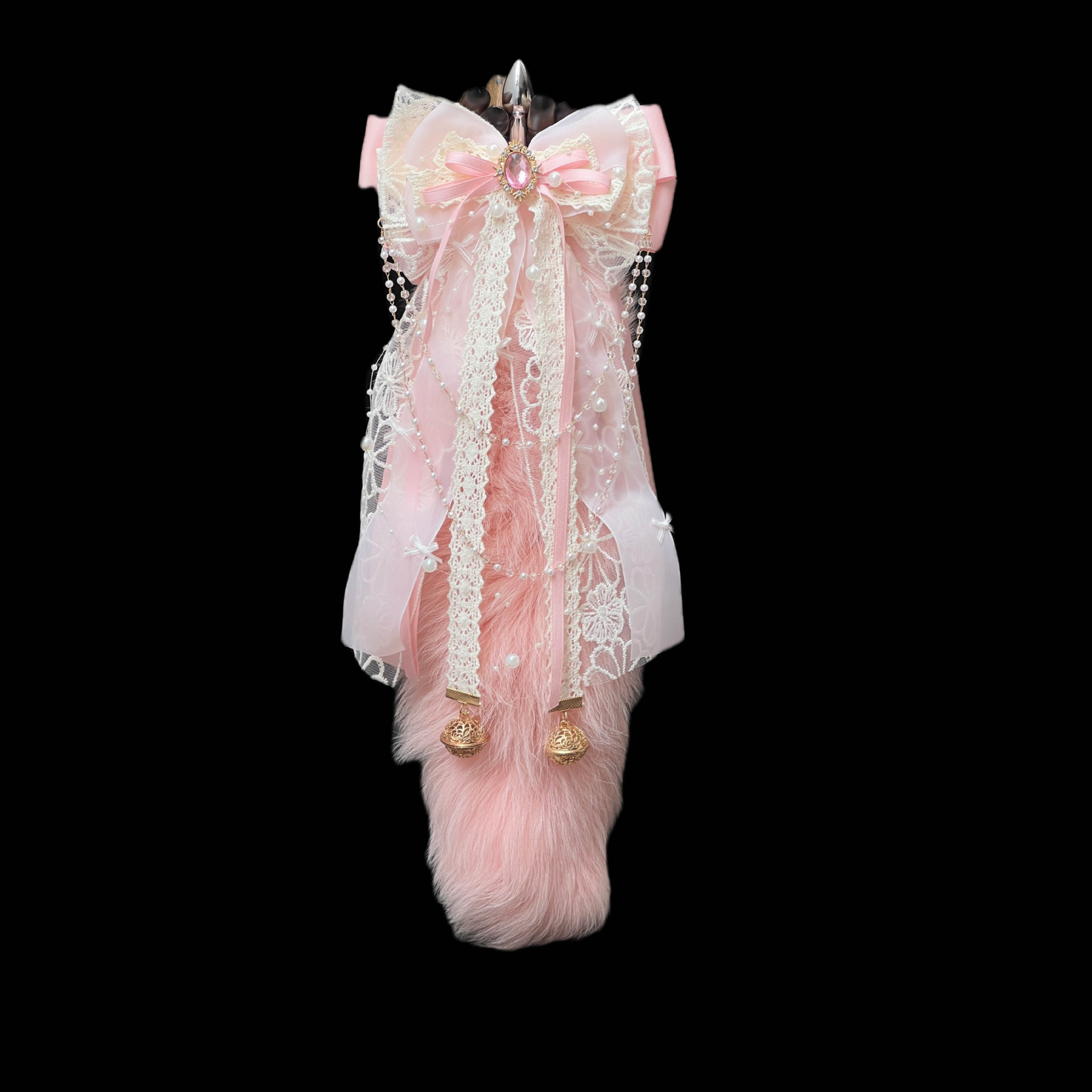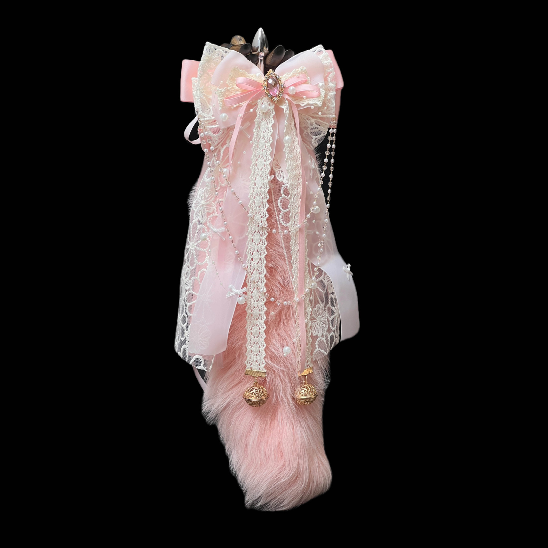 Enhancing its charm is a **hand-made bow** adorned with a delicate **palace bell ring**, adding a subtle jingle that heightens the sensory experience. This thoughtful detail elevates the tail from a mere accessory to a statement piece, perfect for those who appreciate both aesthetics and functionality.