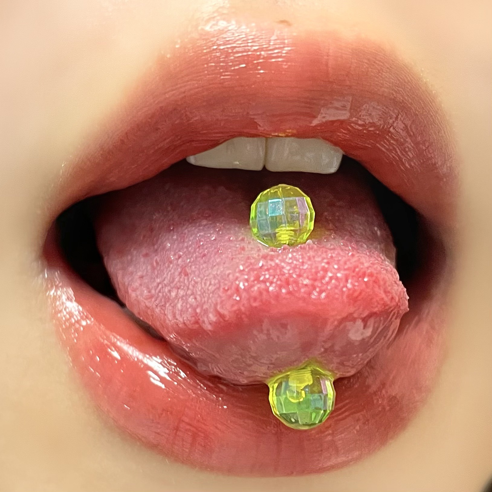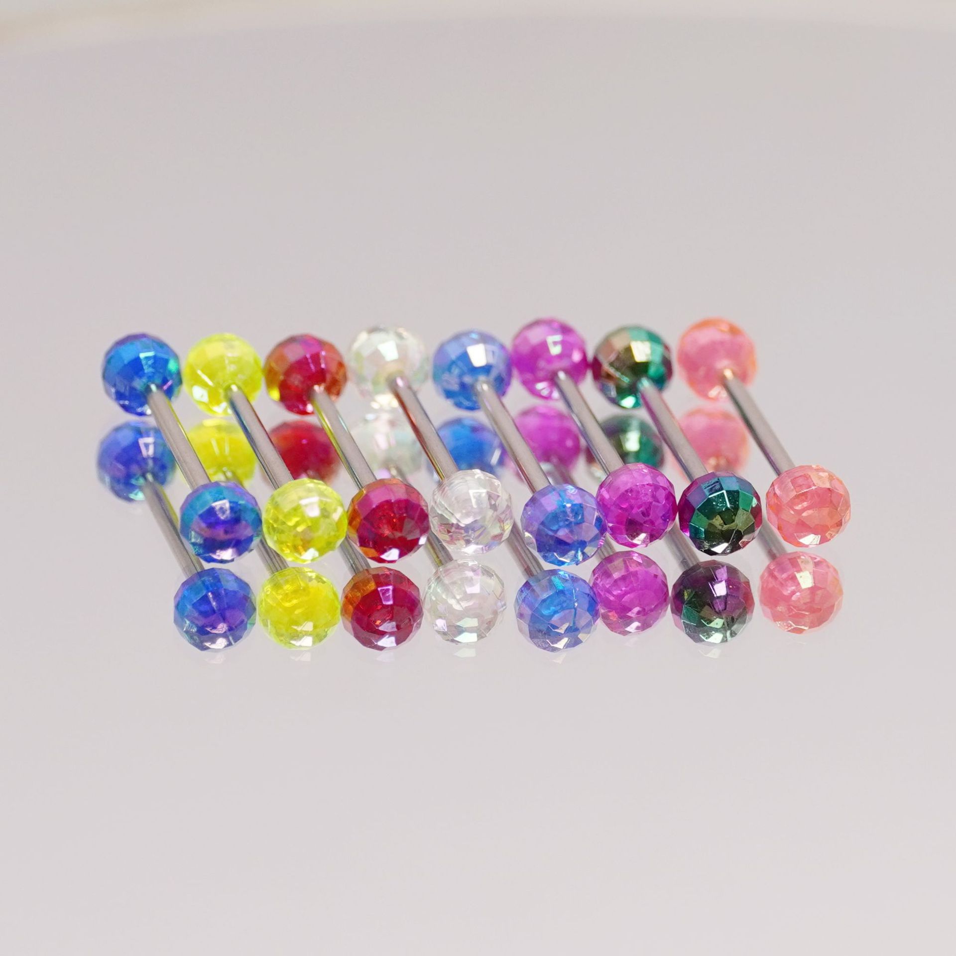 Acrylic coated tongue nail mine bead tongue decoration stainless steel AB tongue nail body piercing jewelry