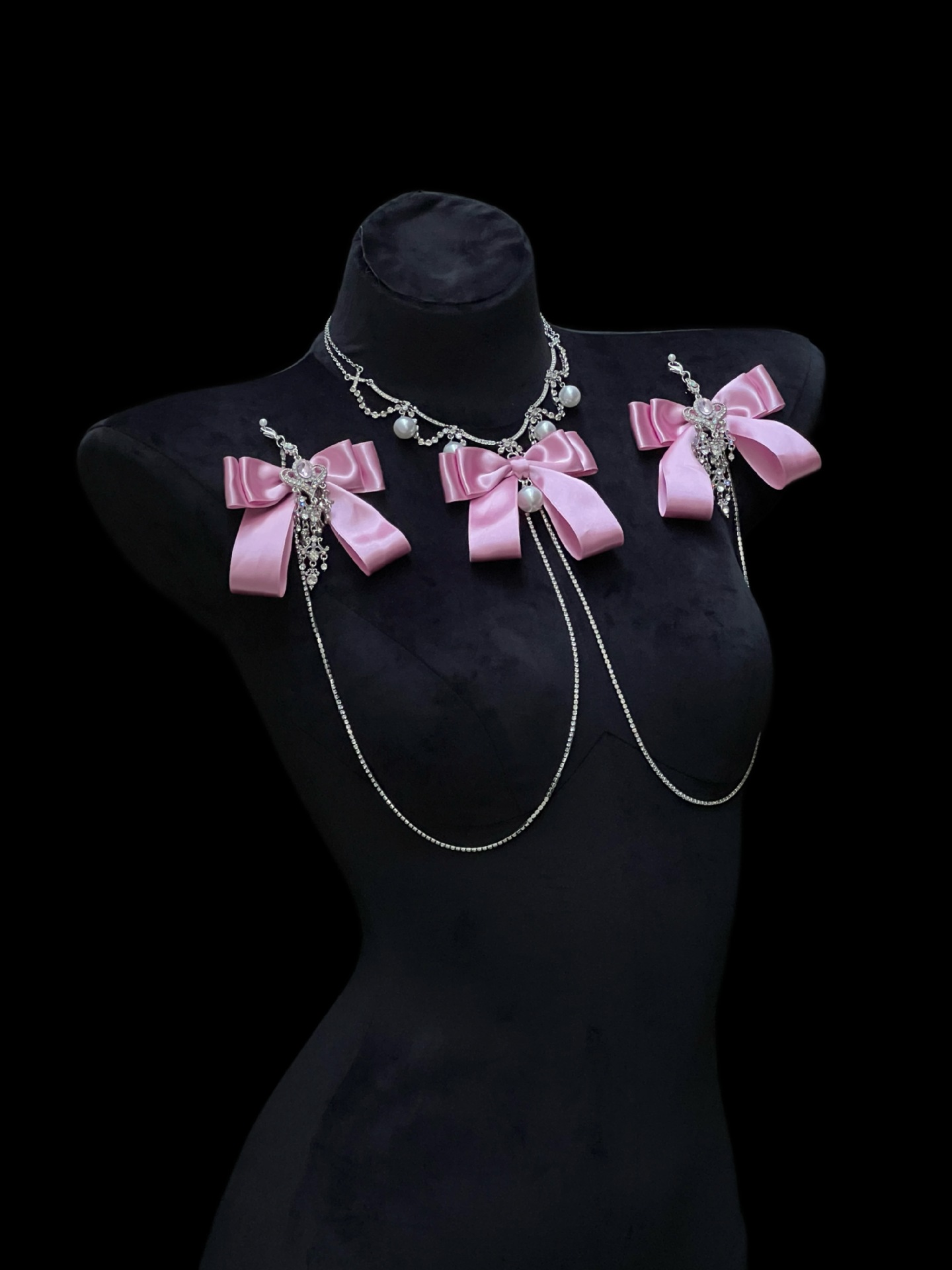 Be the first to review “Alice Palace Style Pink Bow Rhinestone Chest Chain Necklace”