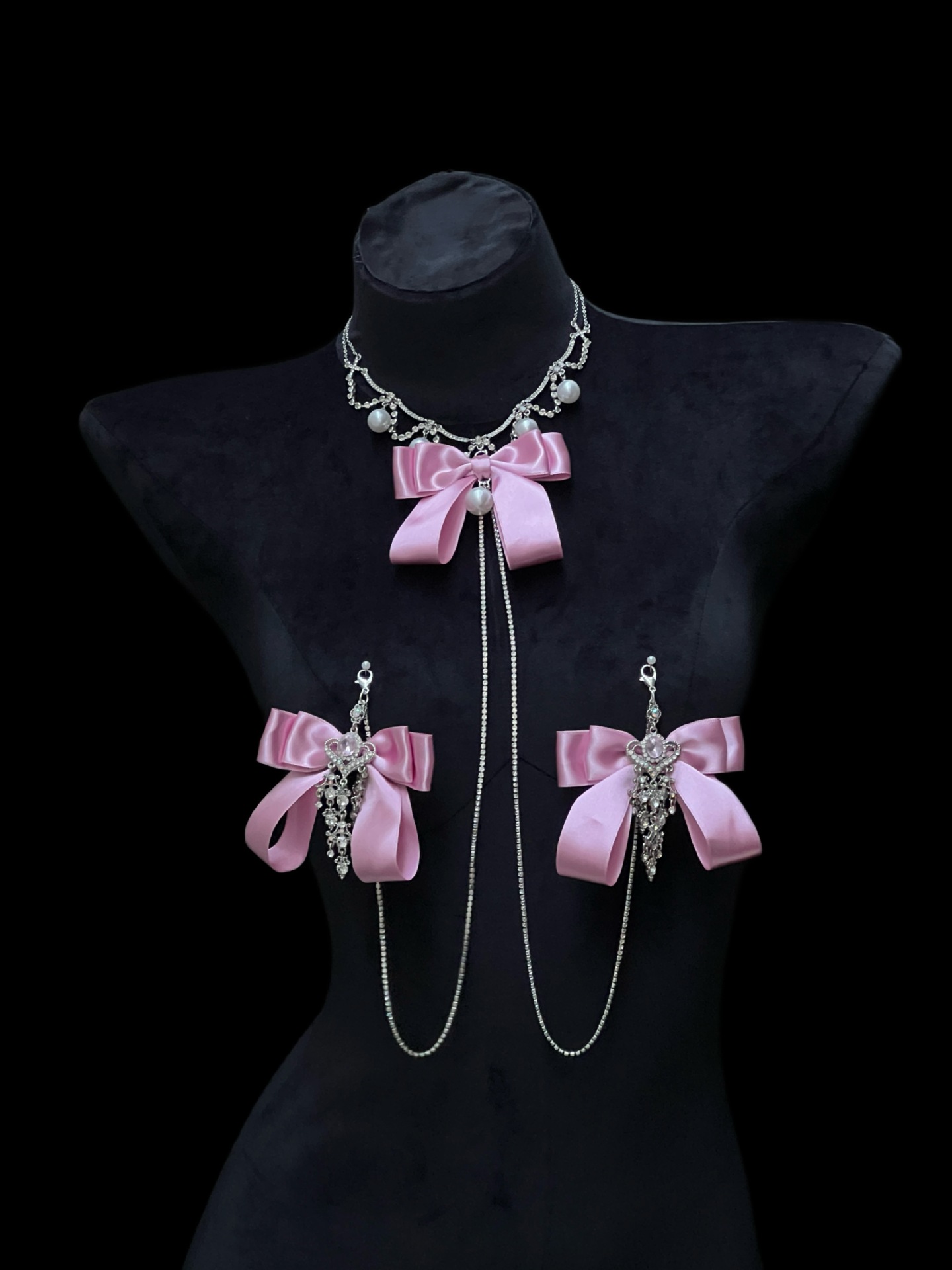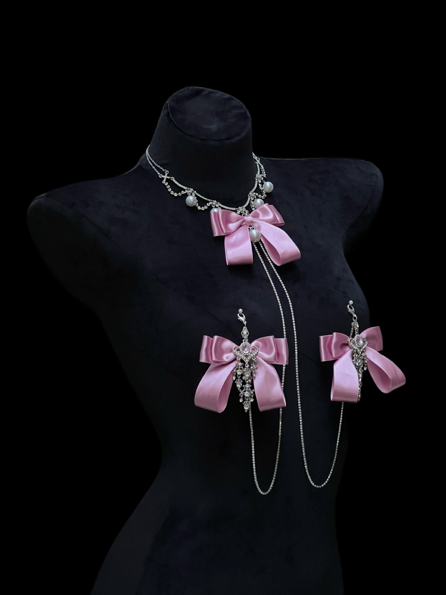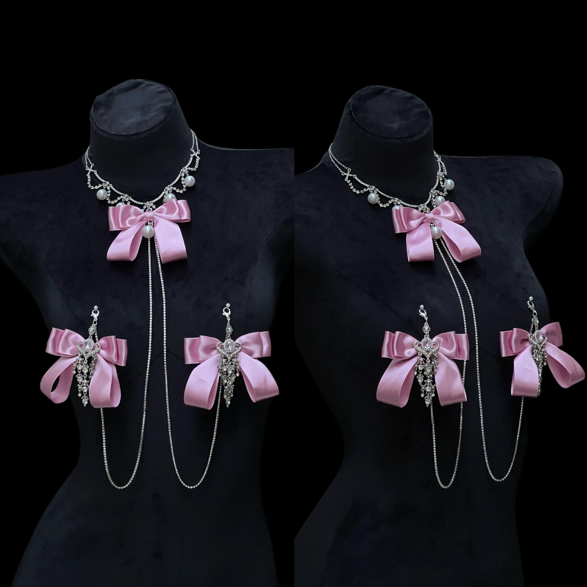 Be the first to review “Alice Palace Style Pink Bow Rhinestone Chest Chain Necklace”
