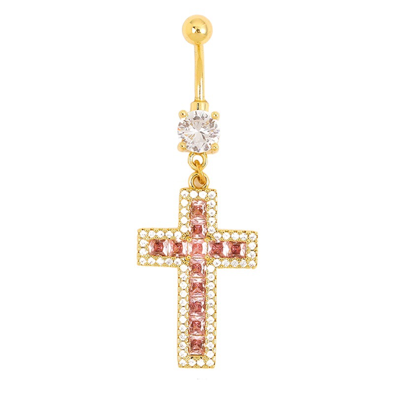 Amazon cross Diamond-embedded navel buckle body piercing pink copper zircon jewelry fashion personality navel nail