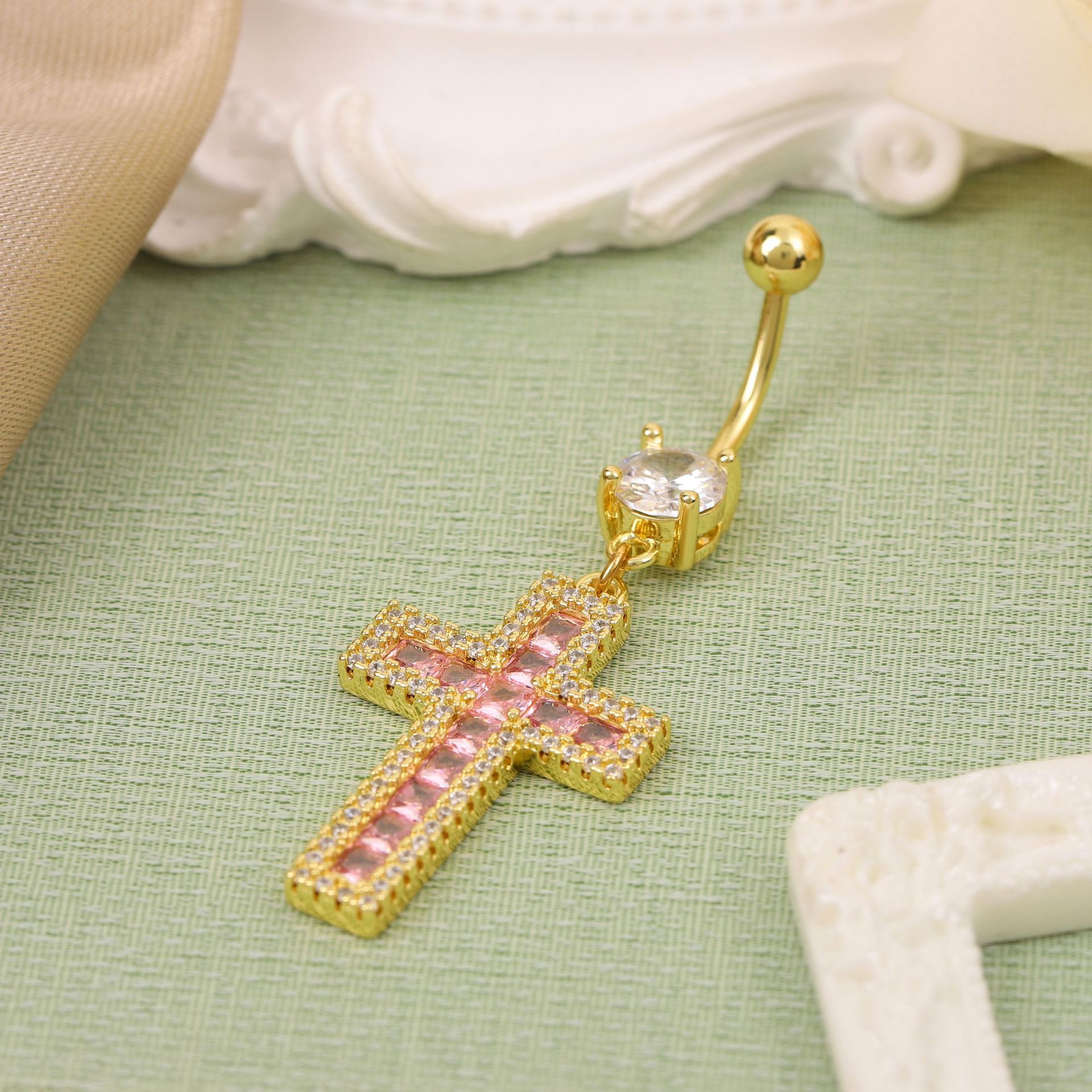 Elevate your style with the Amazon Cross Diamond-Embedded Navel Buckle Body Piercing, a stunning fusion of elegance and bold personality. Crafted from premium pink copper, this navel nail features a dazzling zircon stone embedded in a chic cross design, exuding sophistication and edgy charm. The intricate detailing and high-quality materials ensure durability and a luxurious finish, making it a standout accessory for any occasion.