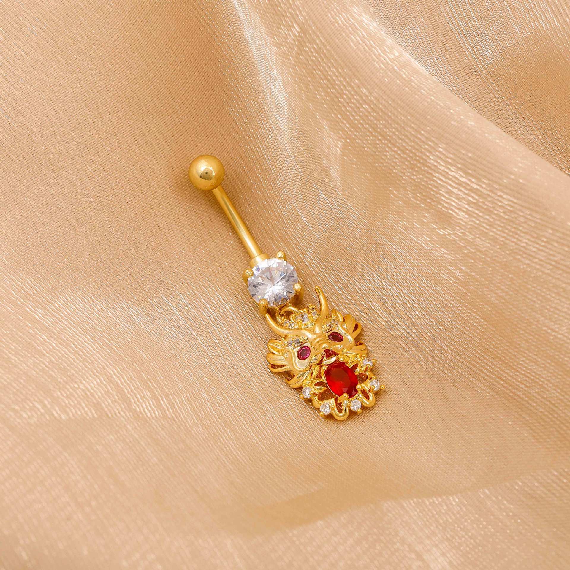 Amazon cute dragon-shaped pendant navel buckle copper white stone inlaid navel nail niche personality fashion design sense navel ornaments for women