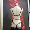 Black Embroidered Hollow-out Open Crotch Panties with Letter Circle Detail