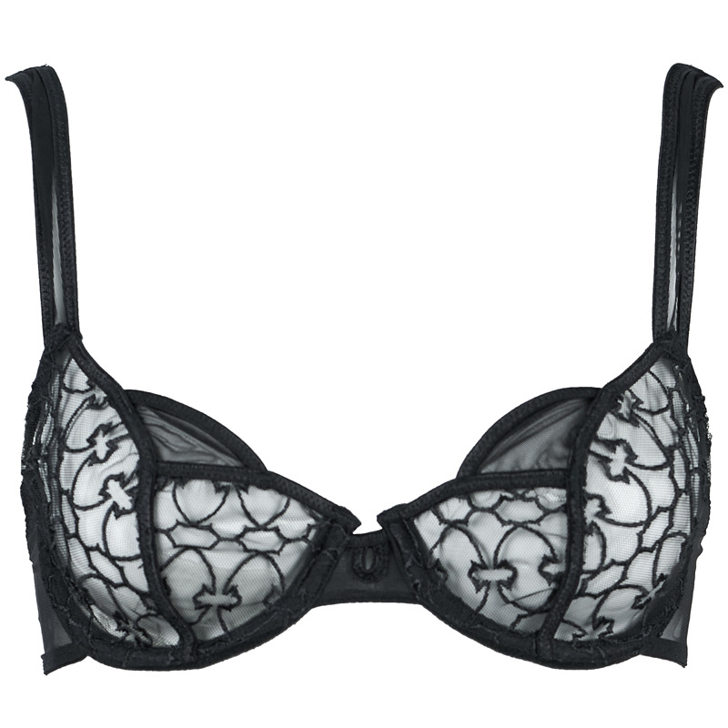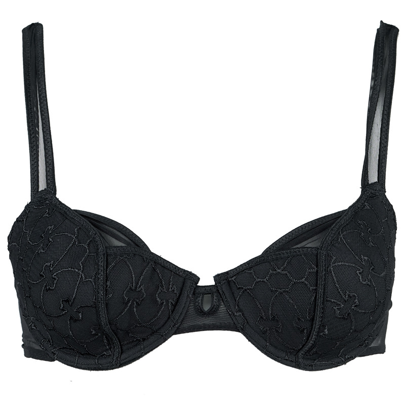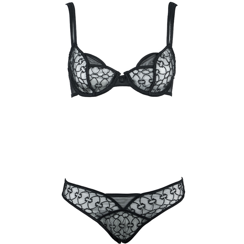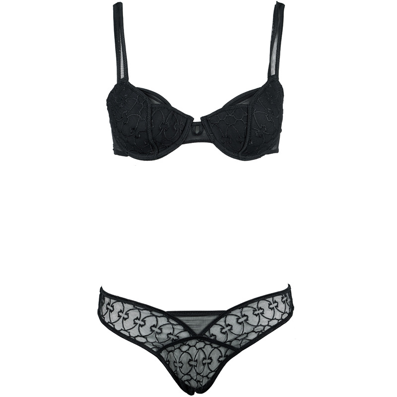 Black Embroidered Steel Ring Thin Cup Cotton Bra & Low Waist Briefs Set