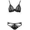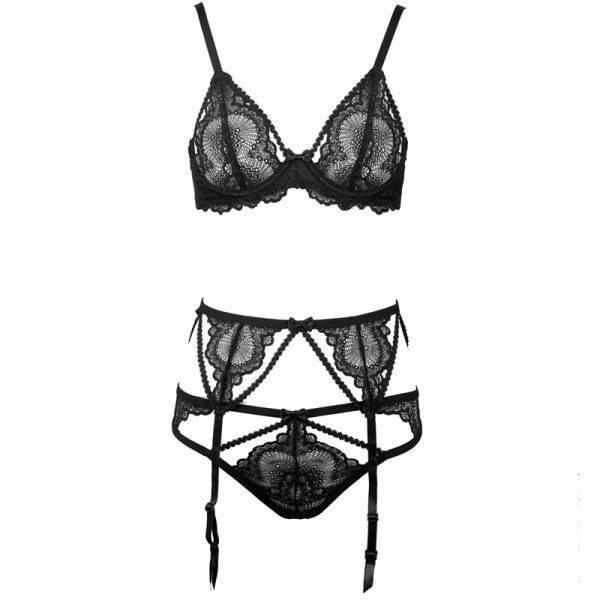 Black Lace Hollow-Out Sexy Bra & Garter Set – Thin Cup Lingerie with Matching Panty