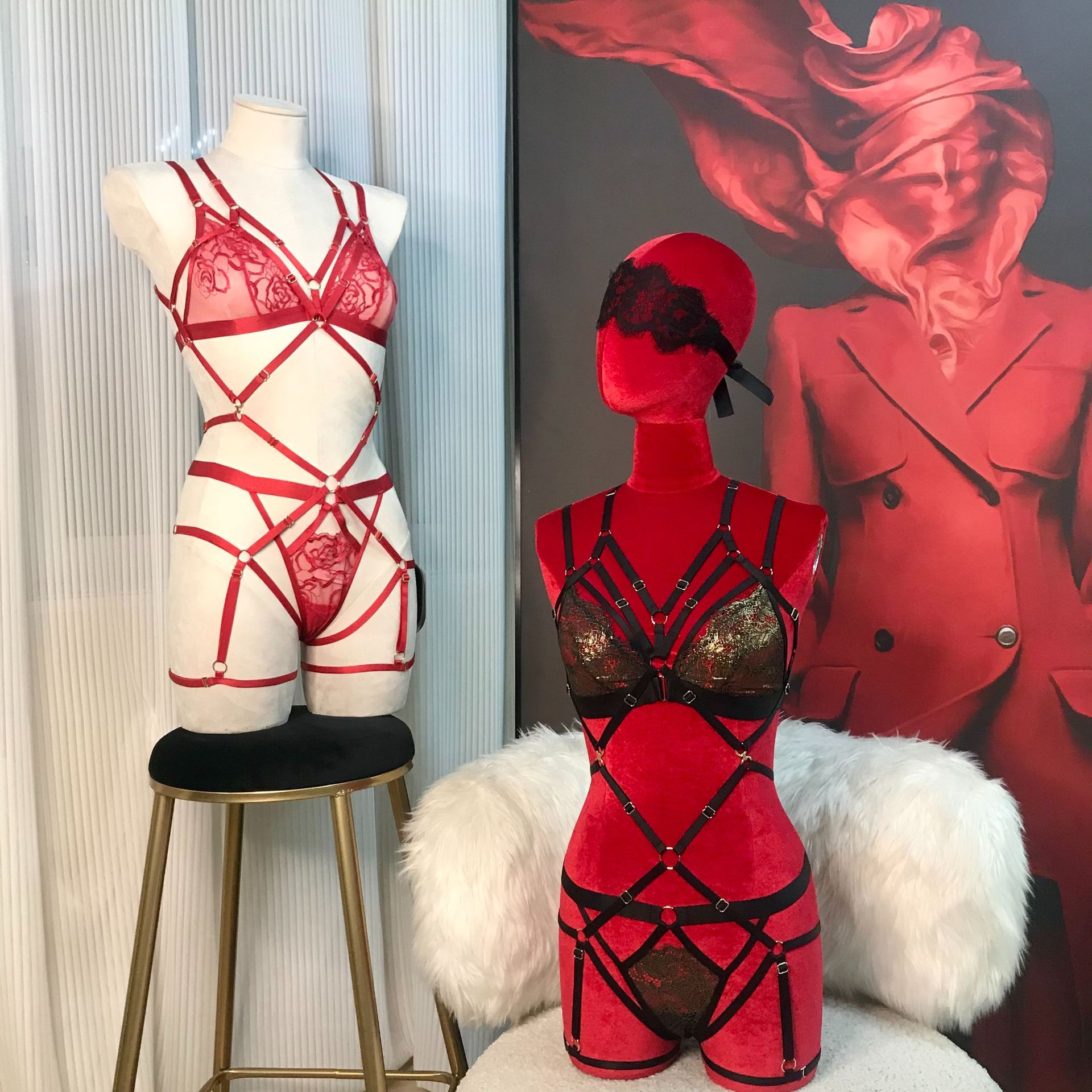 Sexy Embroidered Gold Triangle Cup Bra & Panty Set with Hollow Straps