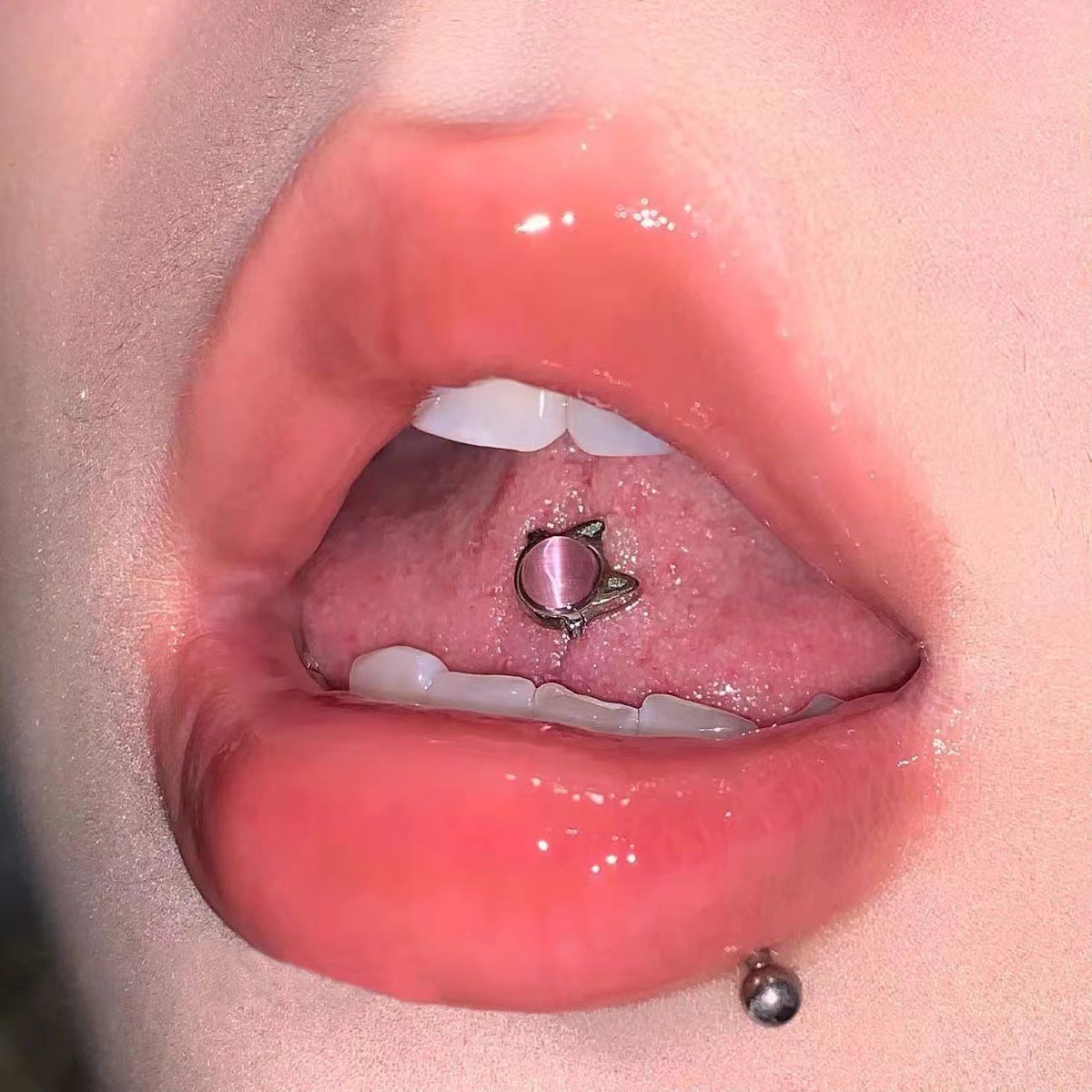 Perfect for trendsetters in Europe and the United States, this tongue ring is a versatile piece that complements both casual and formal looks. Whether you’re making a bold statement or adding a subtle touch of elegance, this **Cat Eye Stone Tongue Ring** is a must-have for anyone who values quality, aesthetics, and individuality.