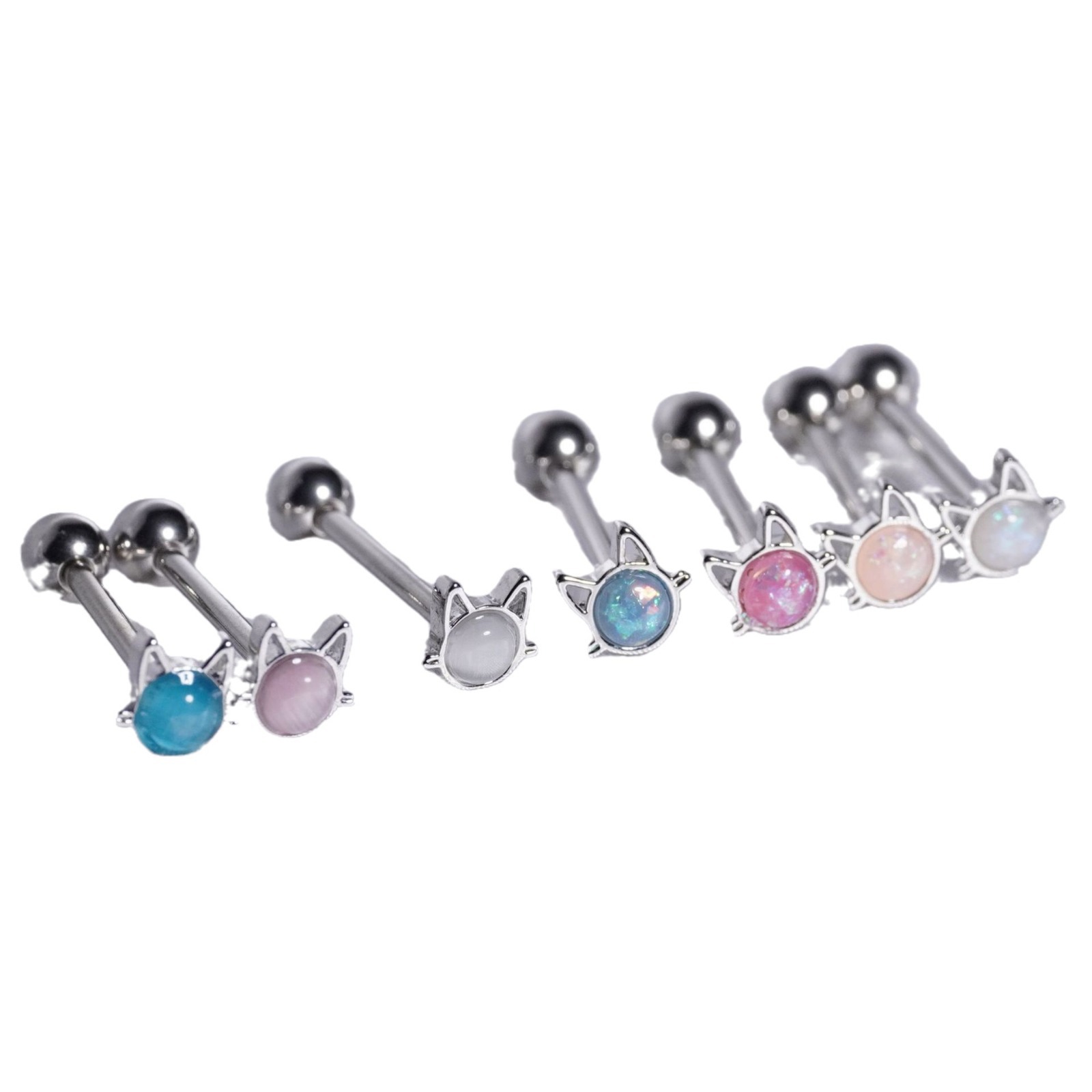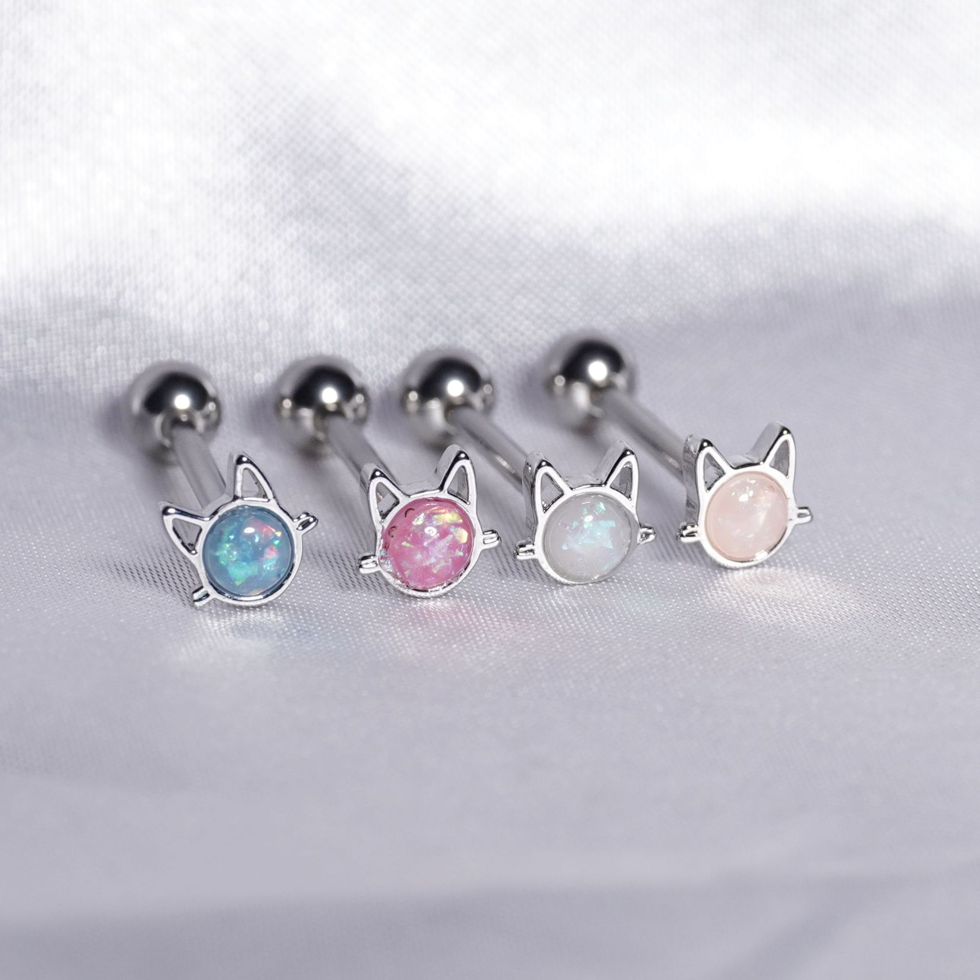 Cat cat eye stone tongue nail natural stone stainless steel tongue ring imitation Aobao tongue ornaments Europe and the United States