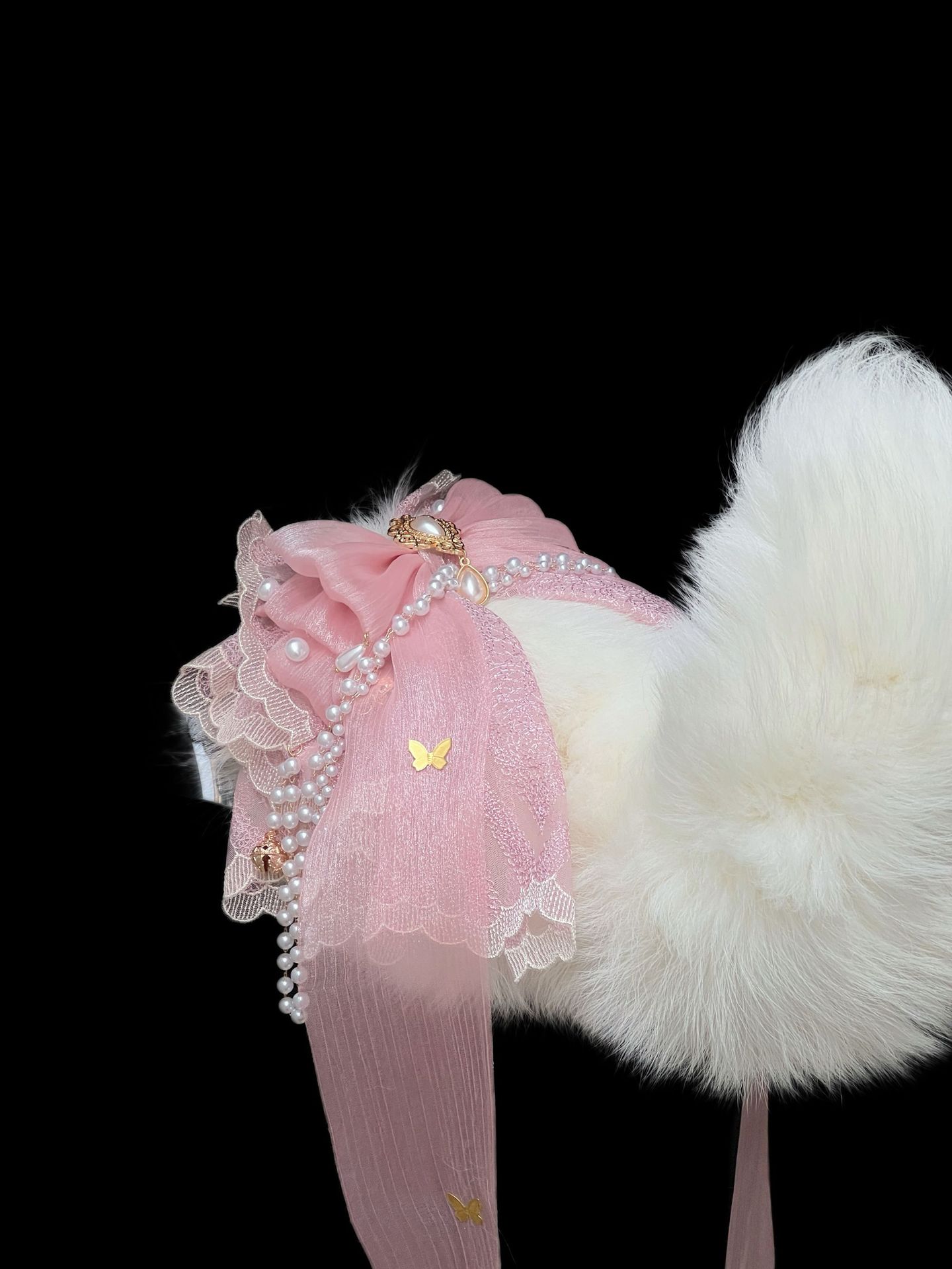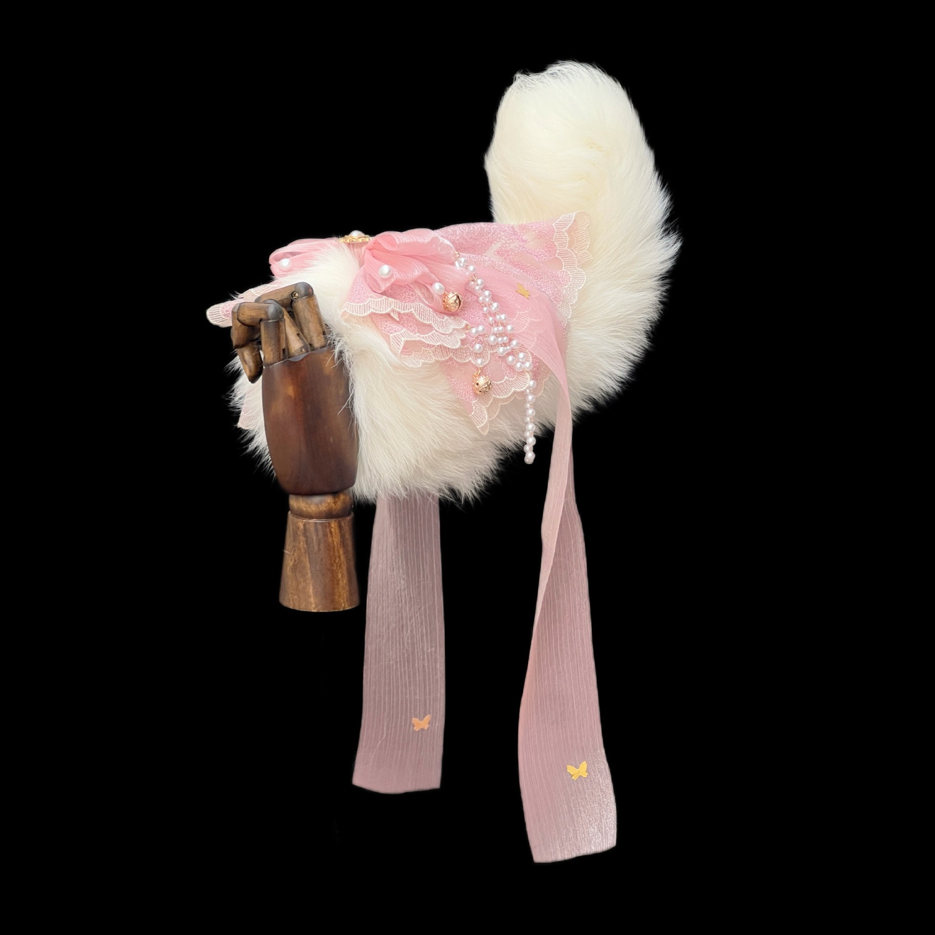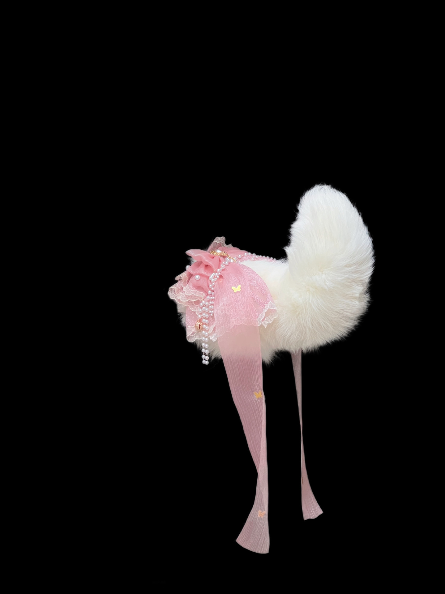 Voice-Controlled Pink Fox Tail Butt Plug with Lace Bow and Bell