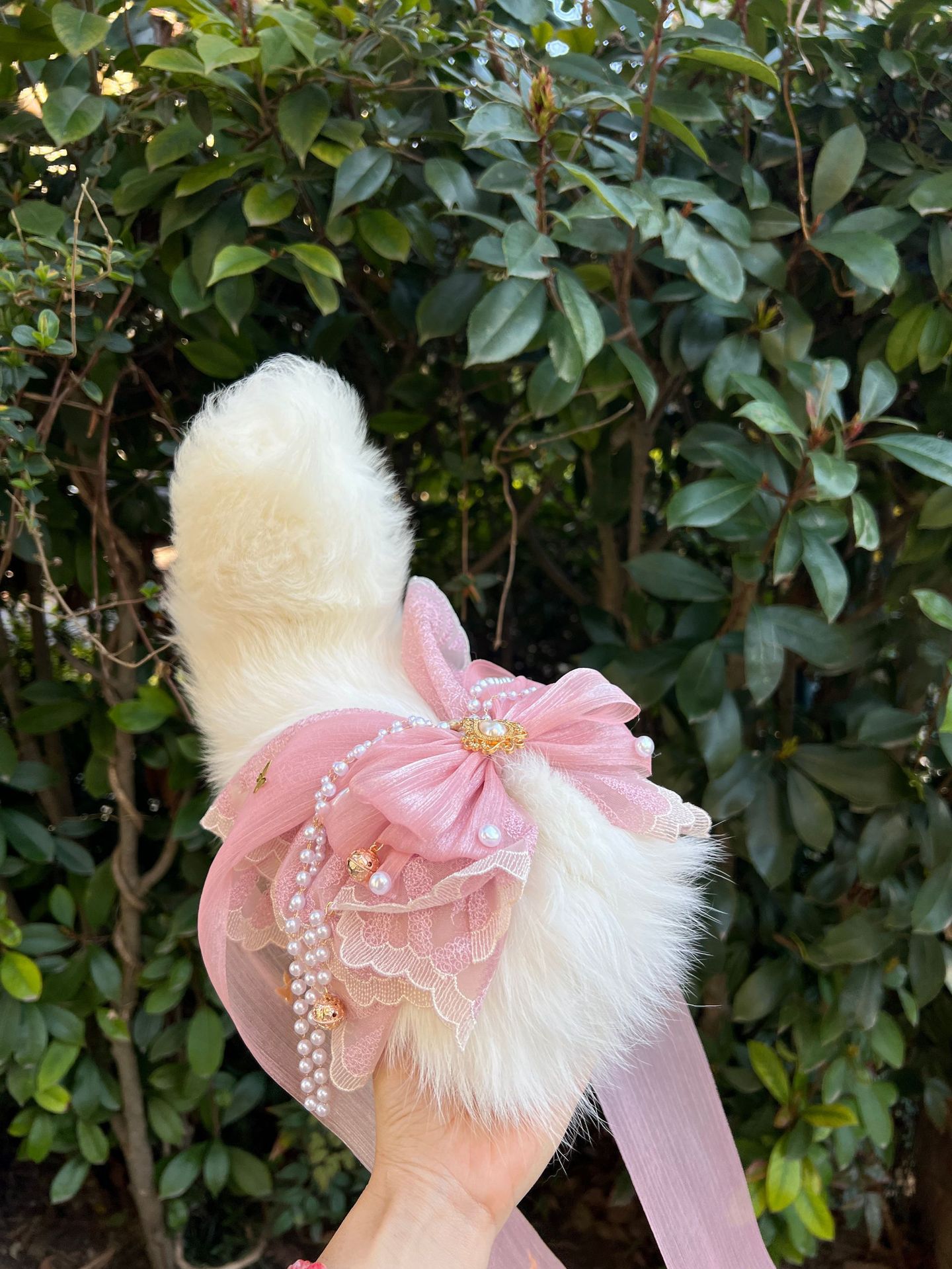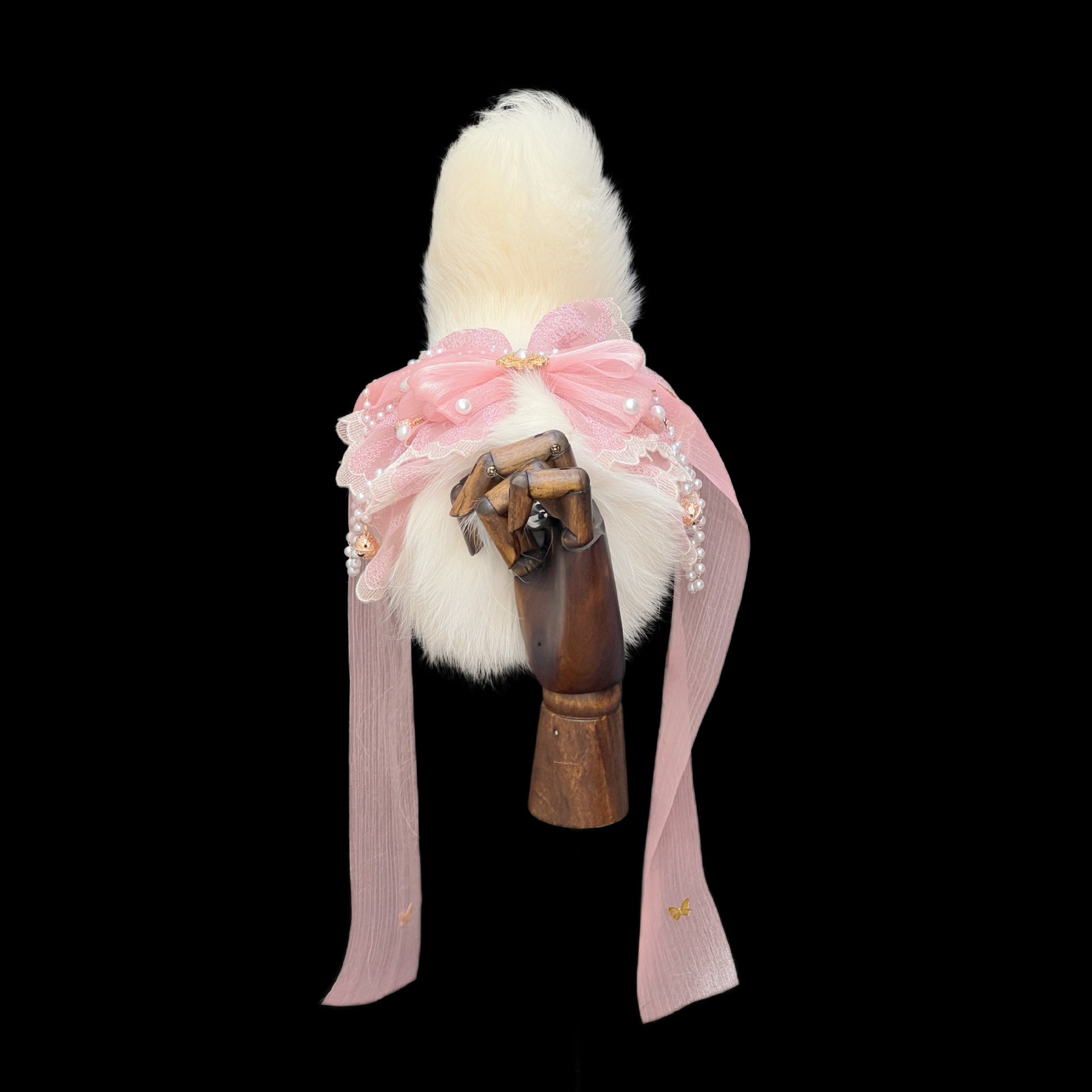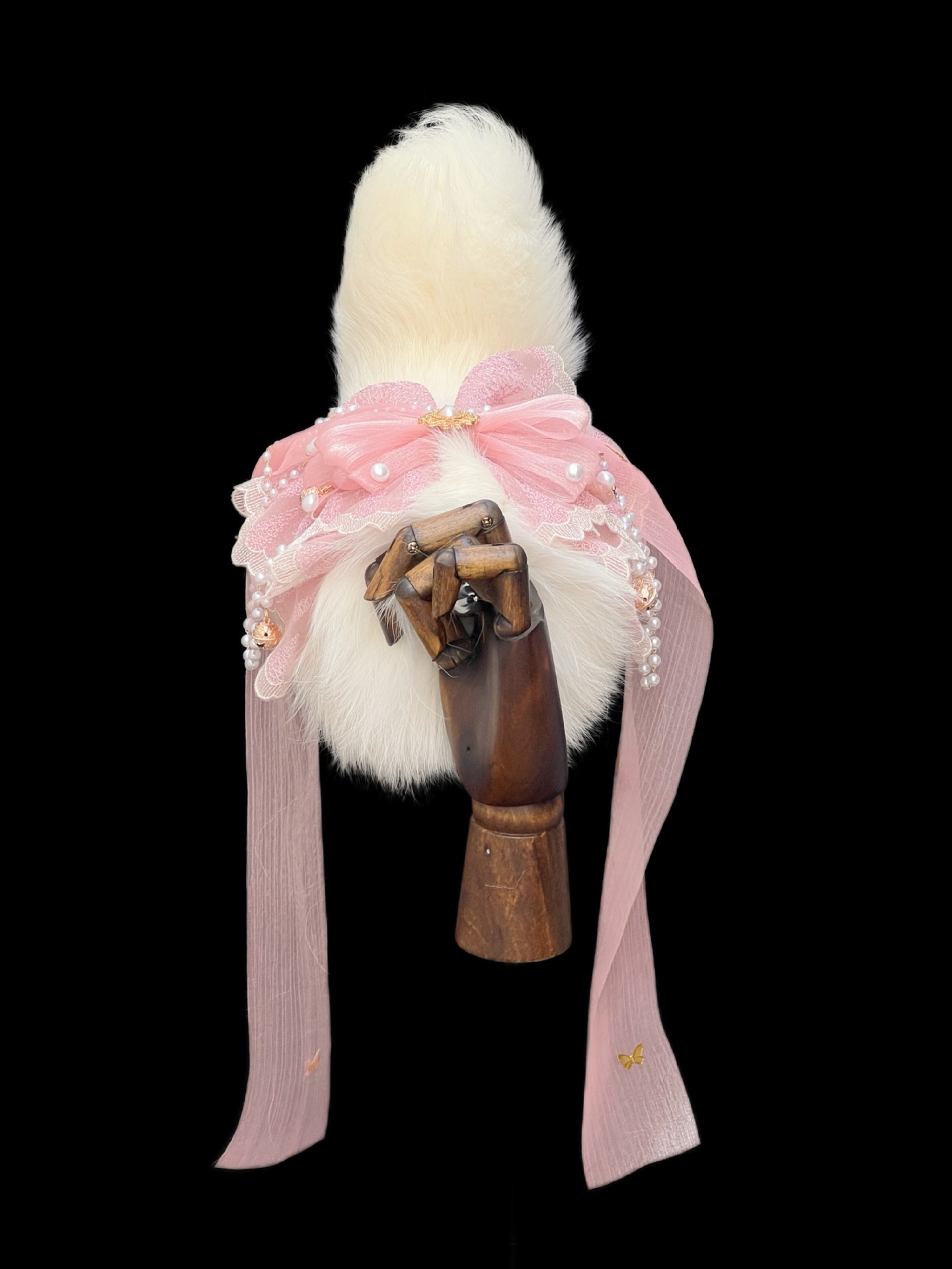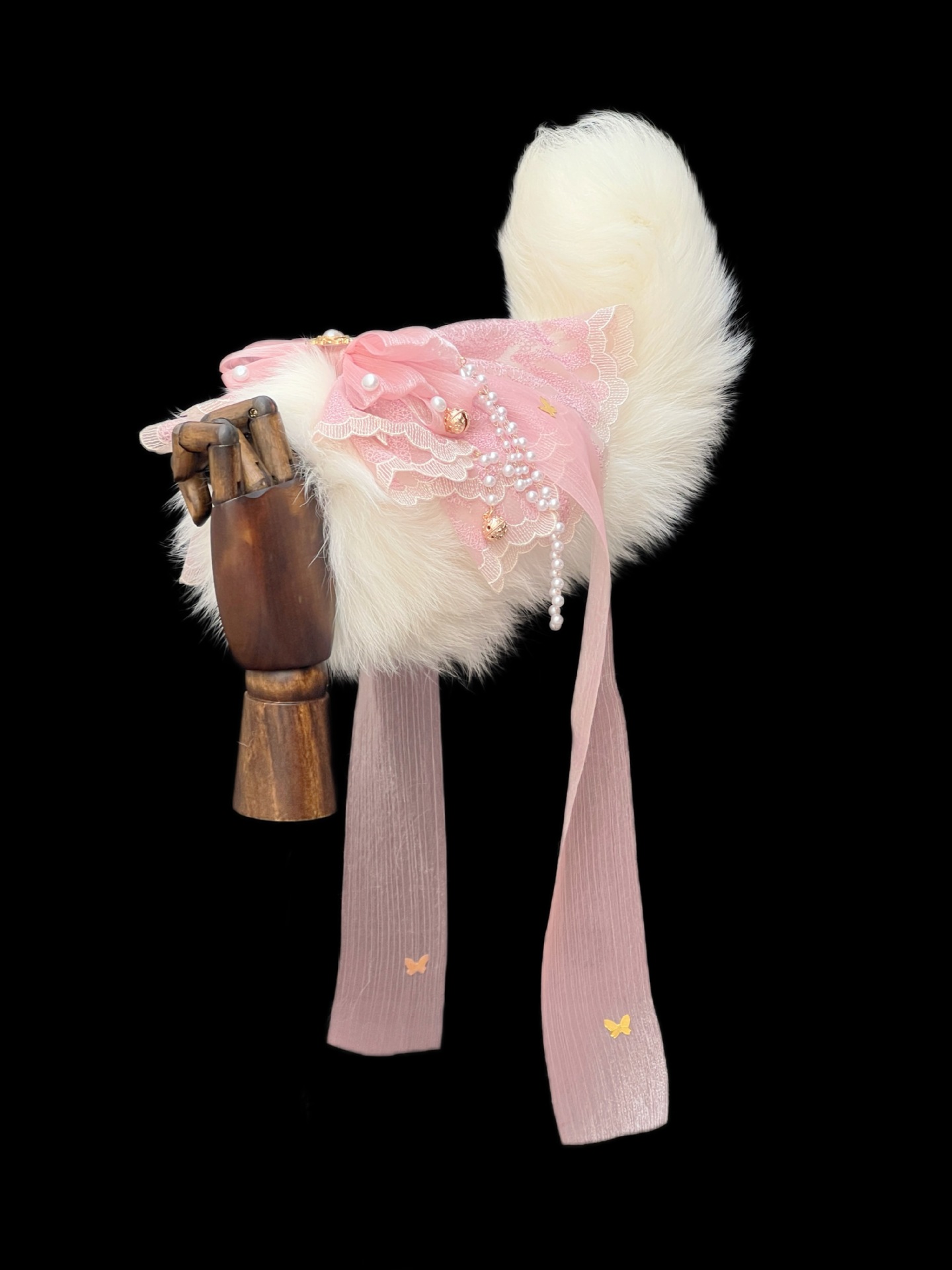 Voice-Controlled Pink Fox Tail Butt Plug with Lace Bow and Bell