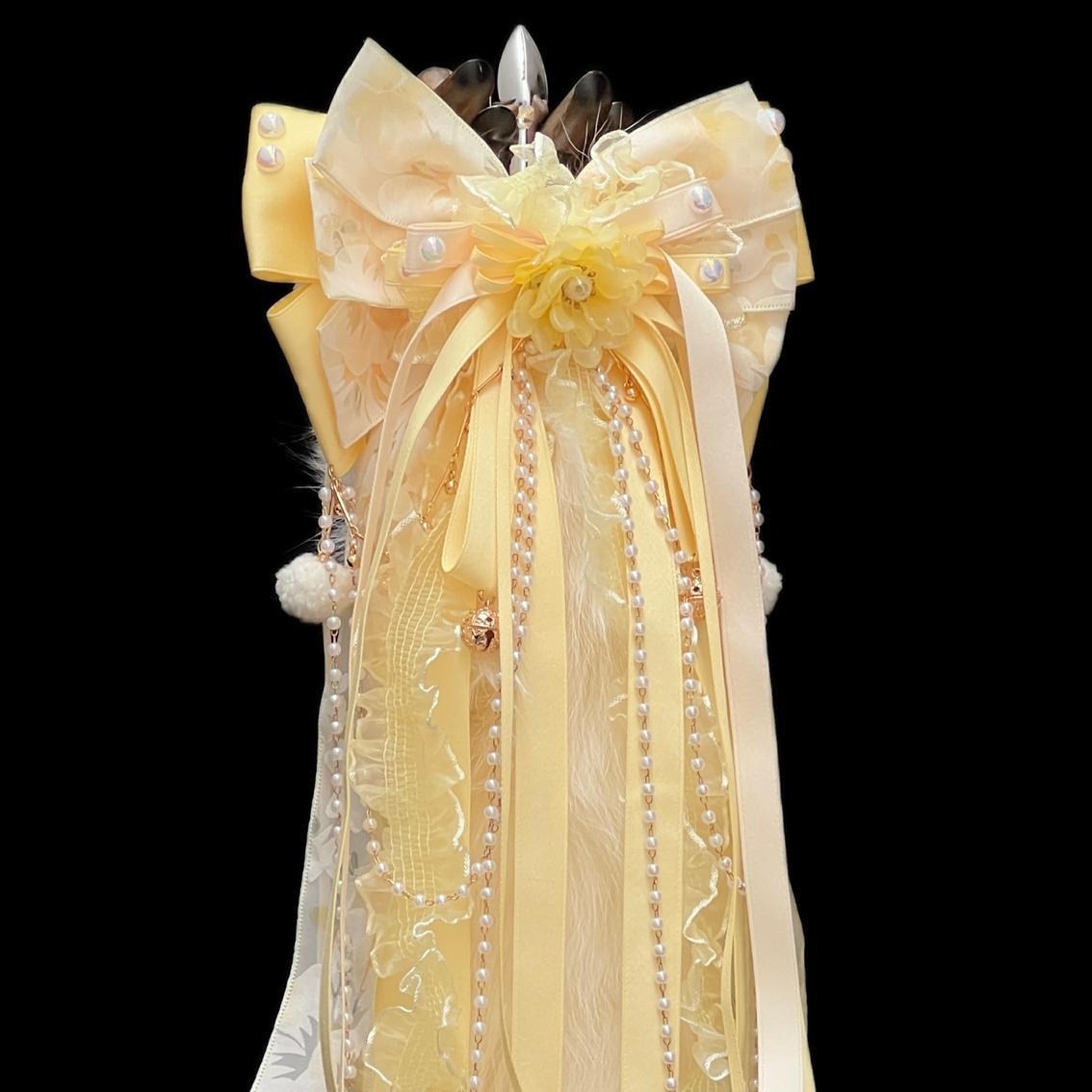 原创手作淡黄色蝴蝶,2.6+2.1CM宫铃,蝴蝶结绑带设计可拆卸。
