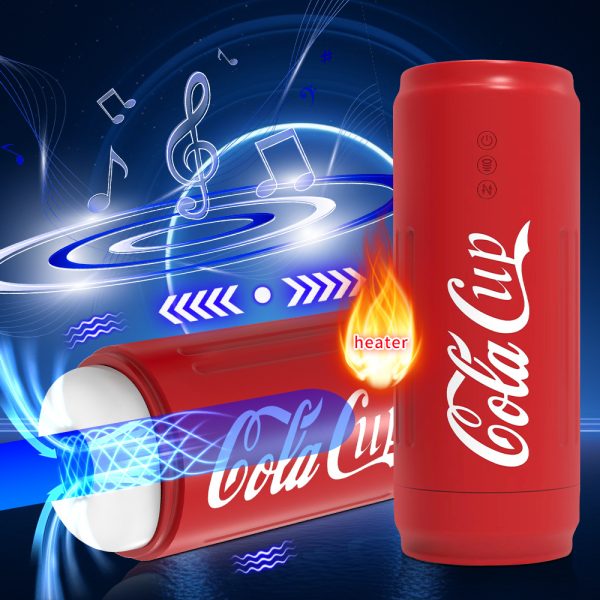 A discreet, automatic masturbation device shaped like a Coke airplane cup. Features include telescopic vibration, pronunciation (likely sounds), intelligent heating, and hands-free operation for a unique and stimulating experience.