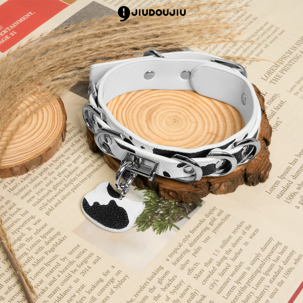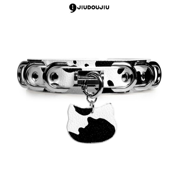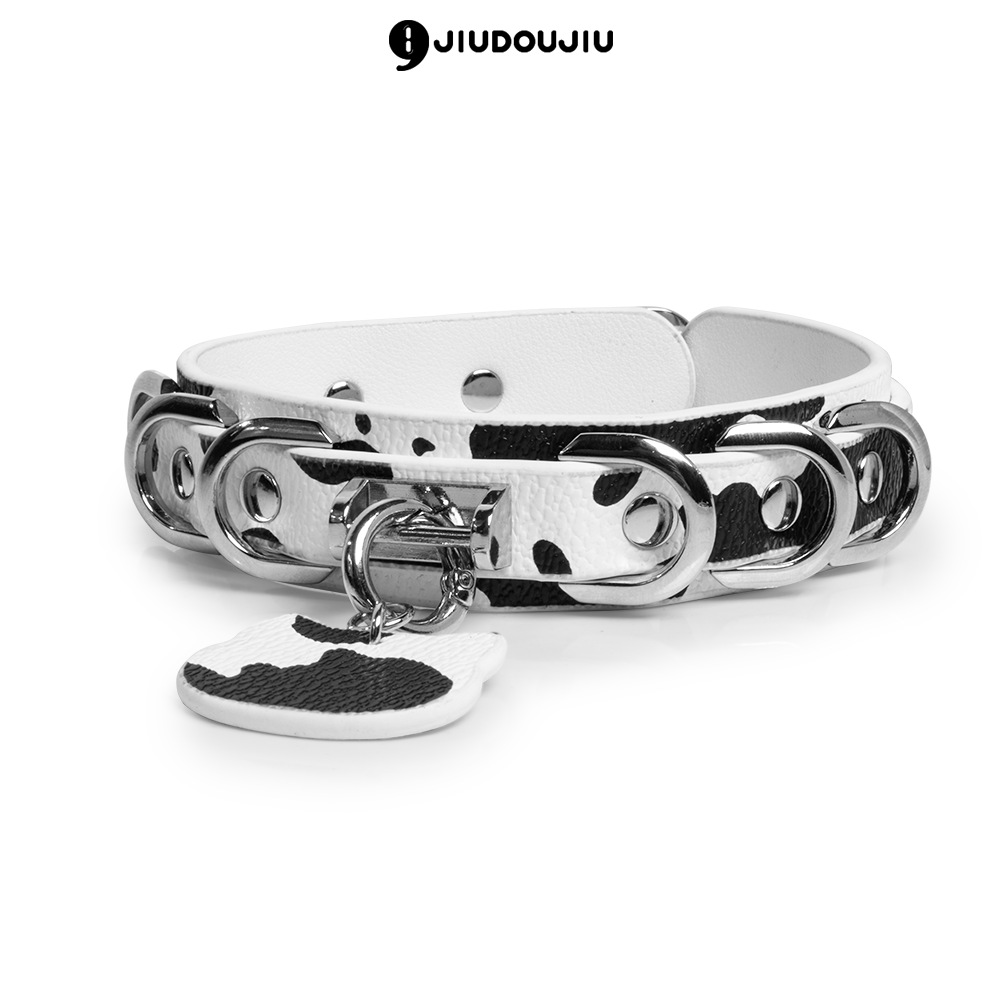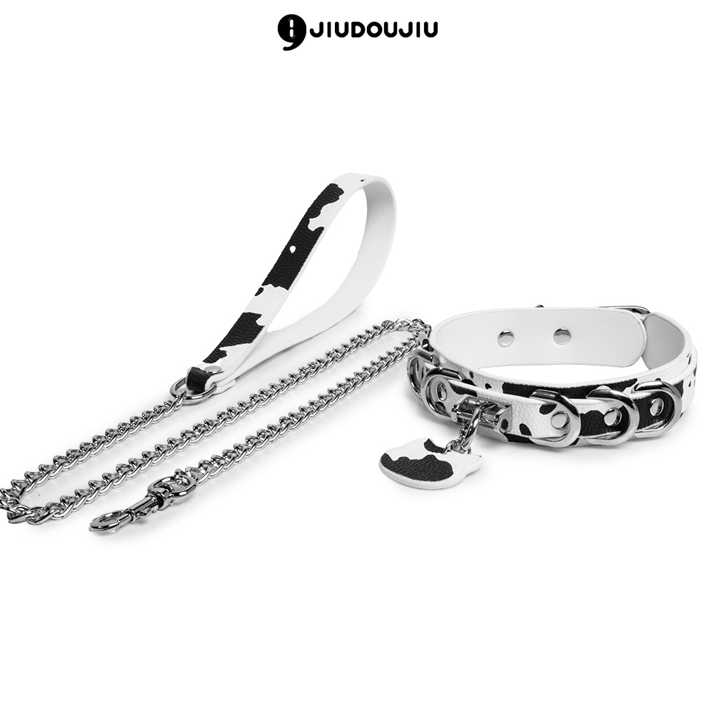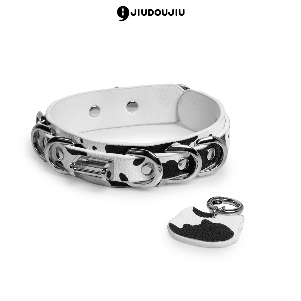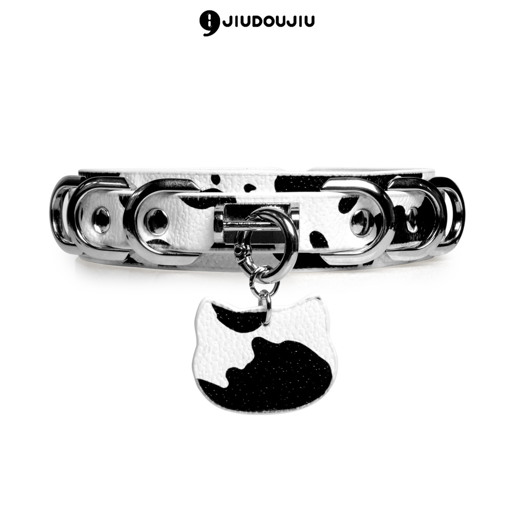 Cow Print Collar: Sexy Maid Style Animal Neck Ring for Cosplay. Features a playful cow print design, maid-style aesthetic, and comfortable neck ring construction, perfect for adding a touch of fun and flirtation to cosplay or intimate wear.