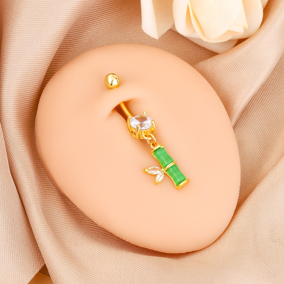 Creative bamboo navel nail fashion high-looking copper white stone inlaid navel buckle high-grade light luxury style pendant navel ornaments for women Wholesale