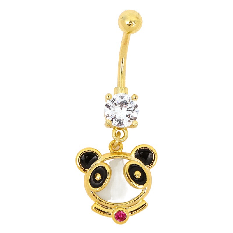 Creative cute bear cat pendant navel nail copper white stone inlaid navel buckle personality fashion design sense navel jewelry female wholesale