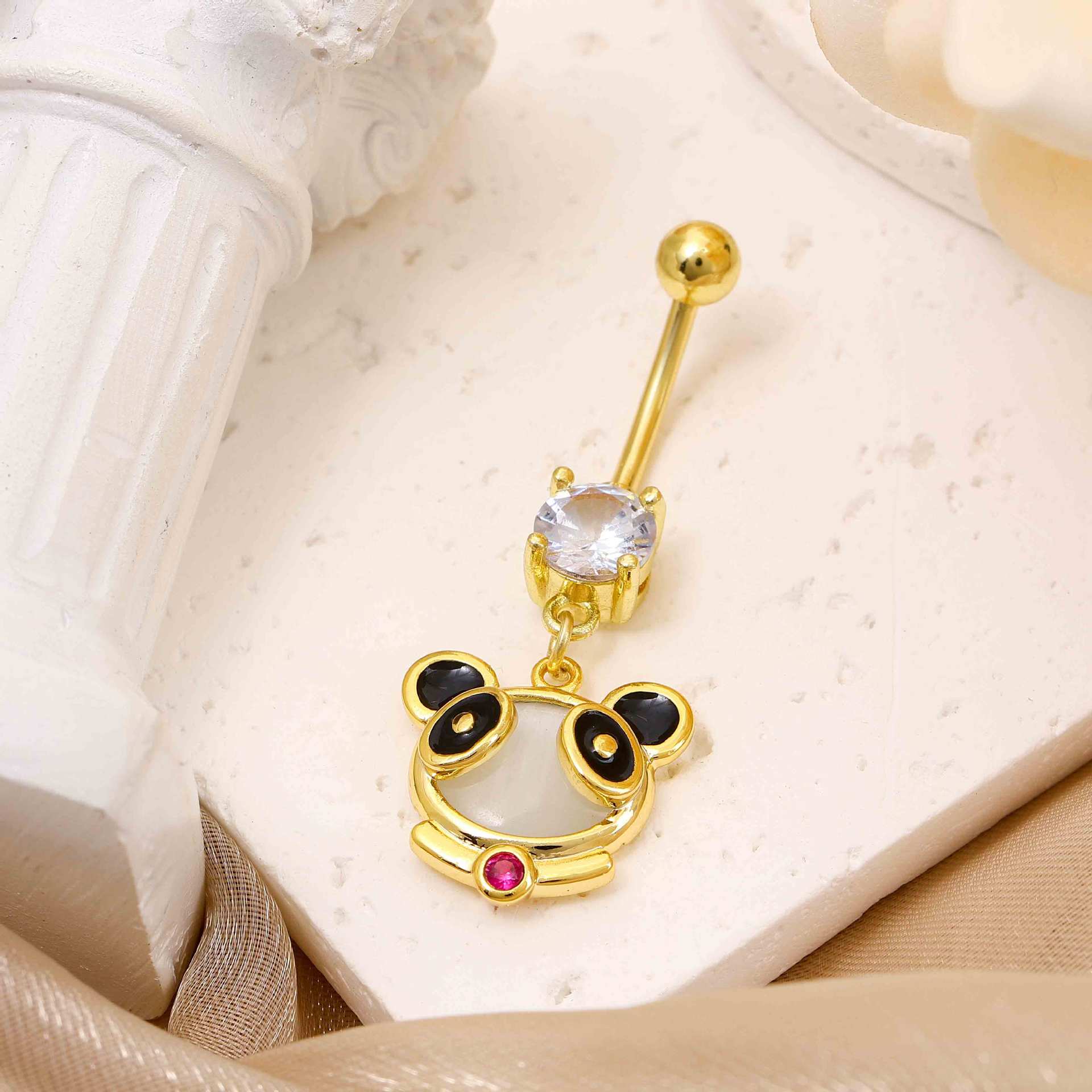 Creative cute bear cat pendant umbilical nail copper white stone inlaid umbilical buckle personality fashion design sense umbilical ornaments women wholesale