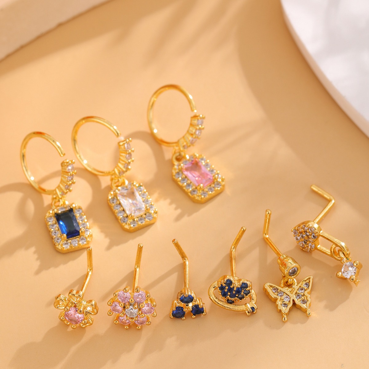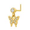 Cross-border fashion hot copper plated real gold inlaid zircon butterfly love nose nail nose ring puncture jewelry manufacturers direct supply