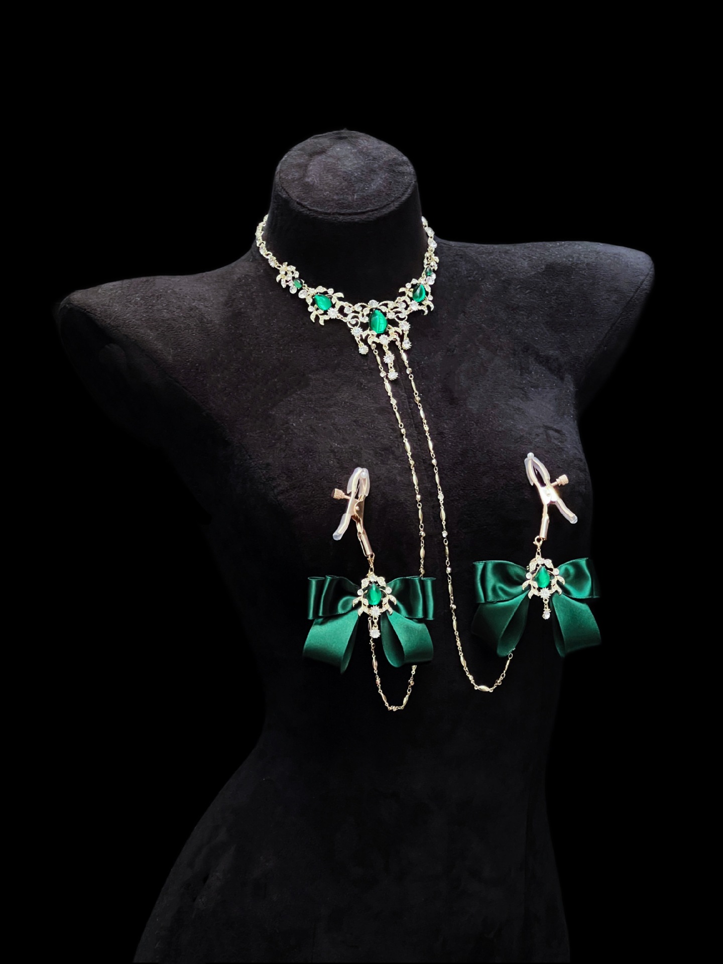Be the first to review “Cuiying Original Design Retro Imitation Diamond Chest Chain with Dark Green Bows”