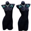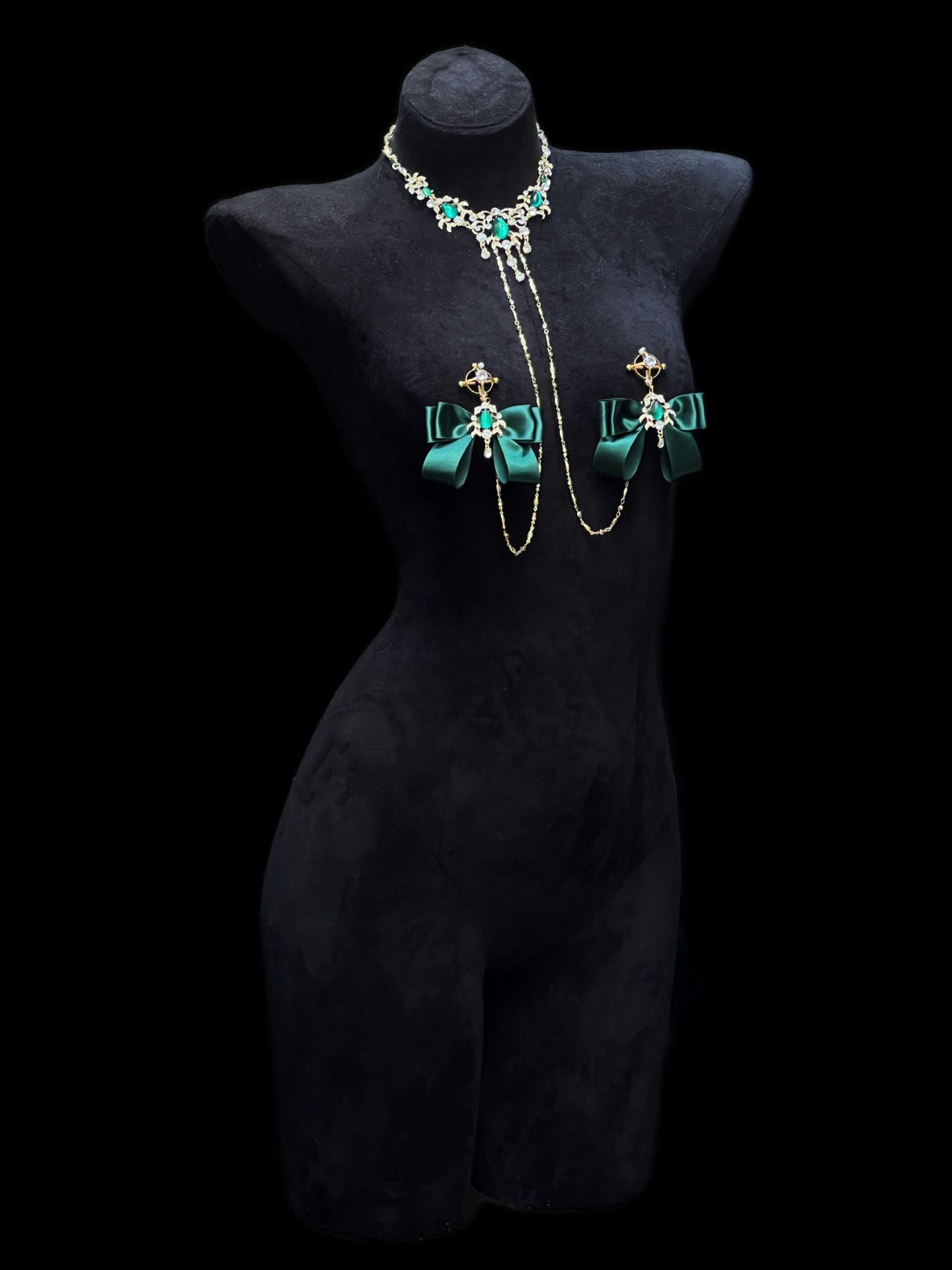 Cuiying Original Design Retro Imitation Diamond Chest Chain with Dark Green Bows