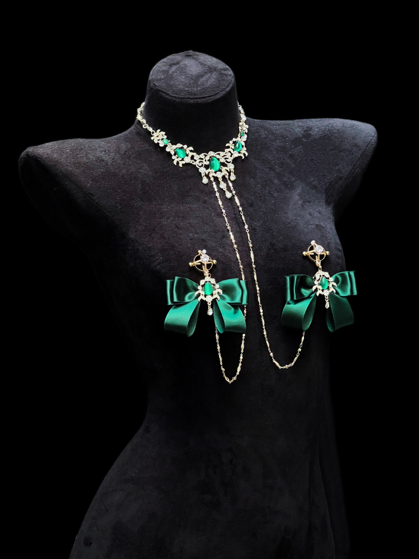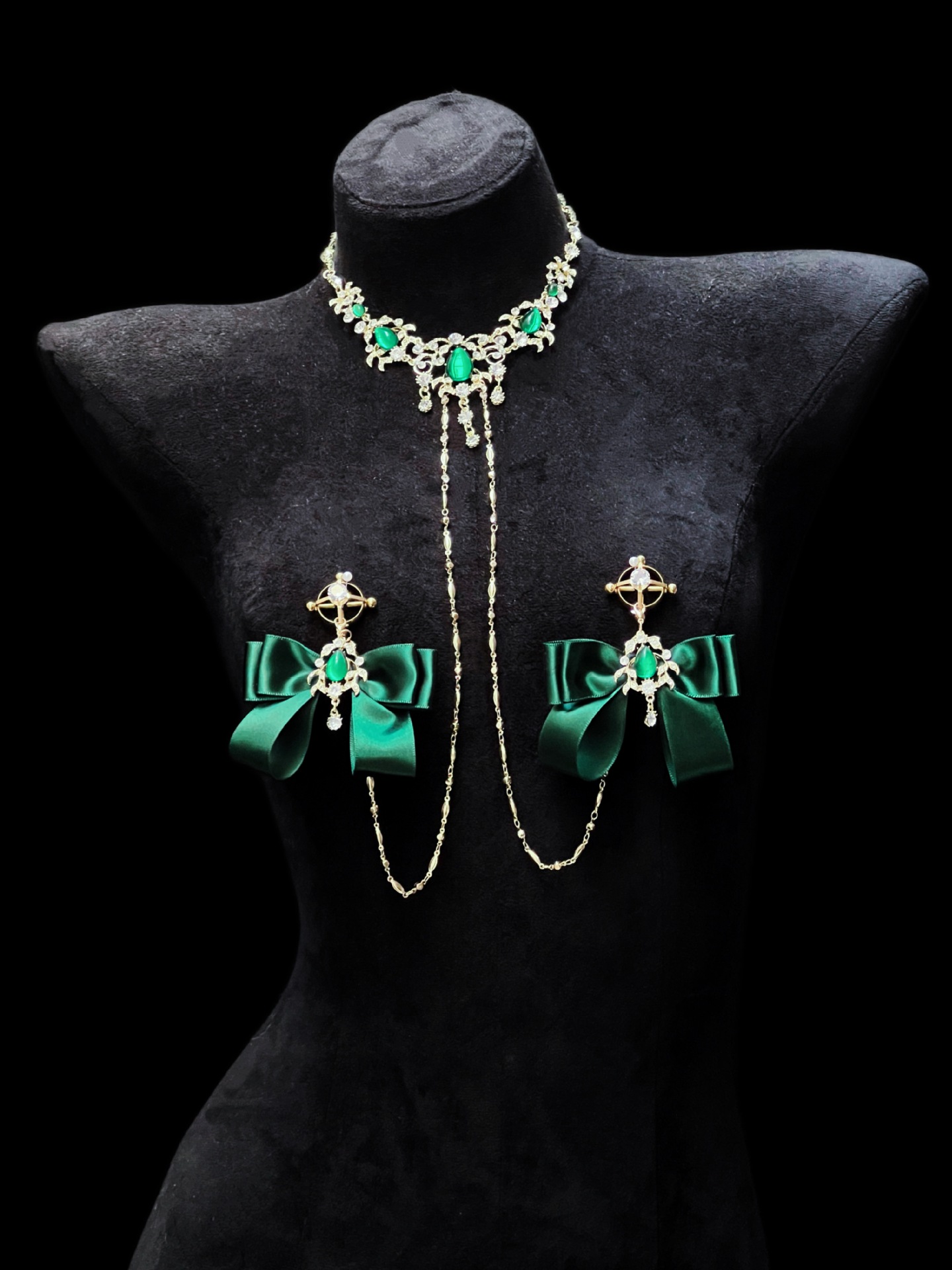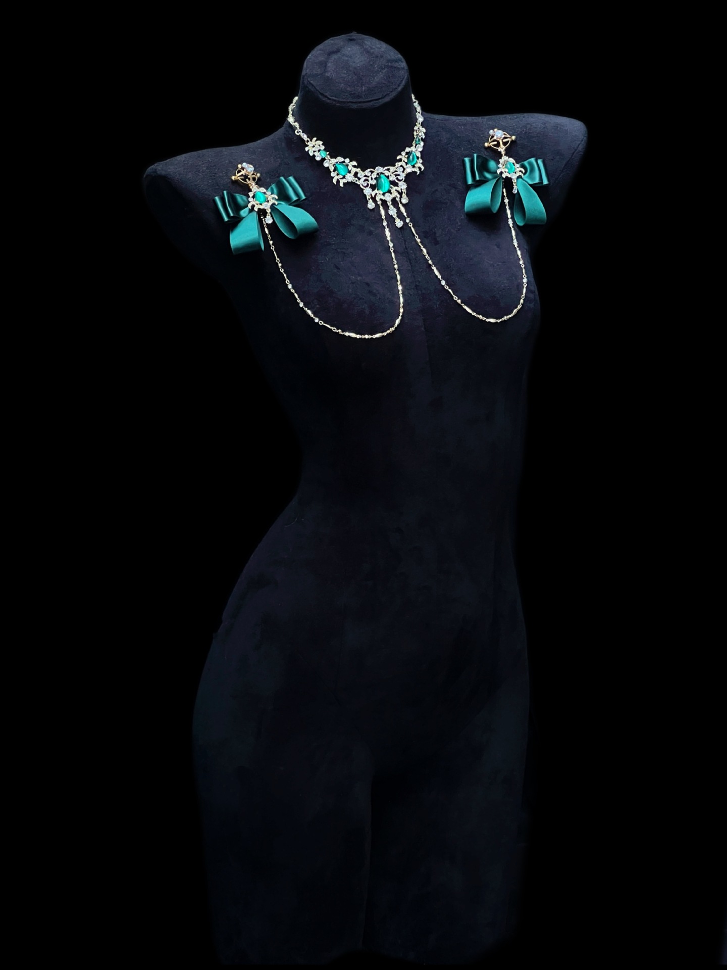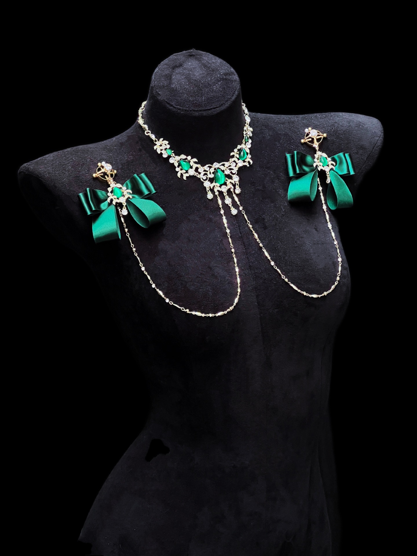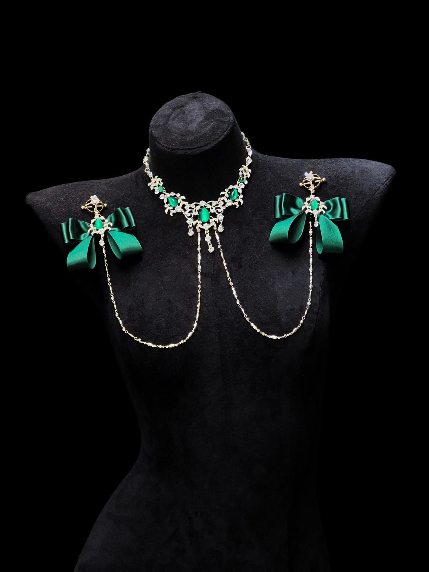 Be the first to review “Cuiying Original Design Retro Imitation Diamond Chest Chain with Dark Green Bows”
