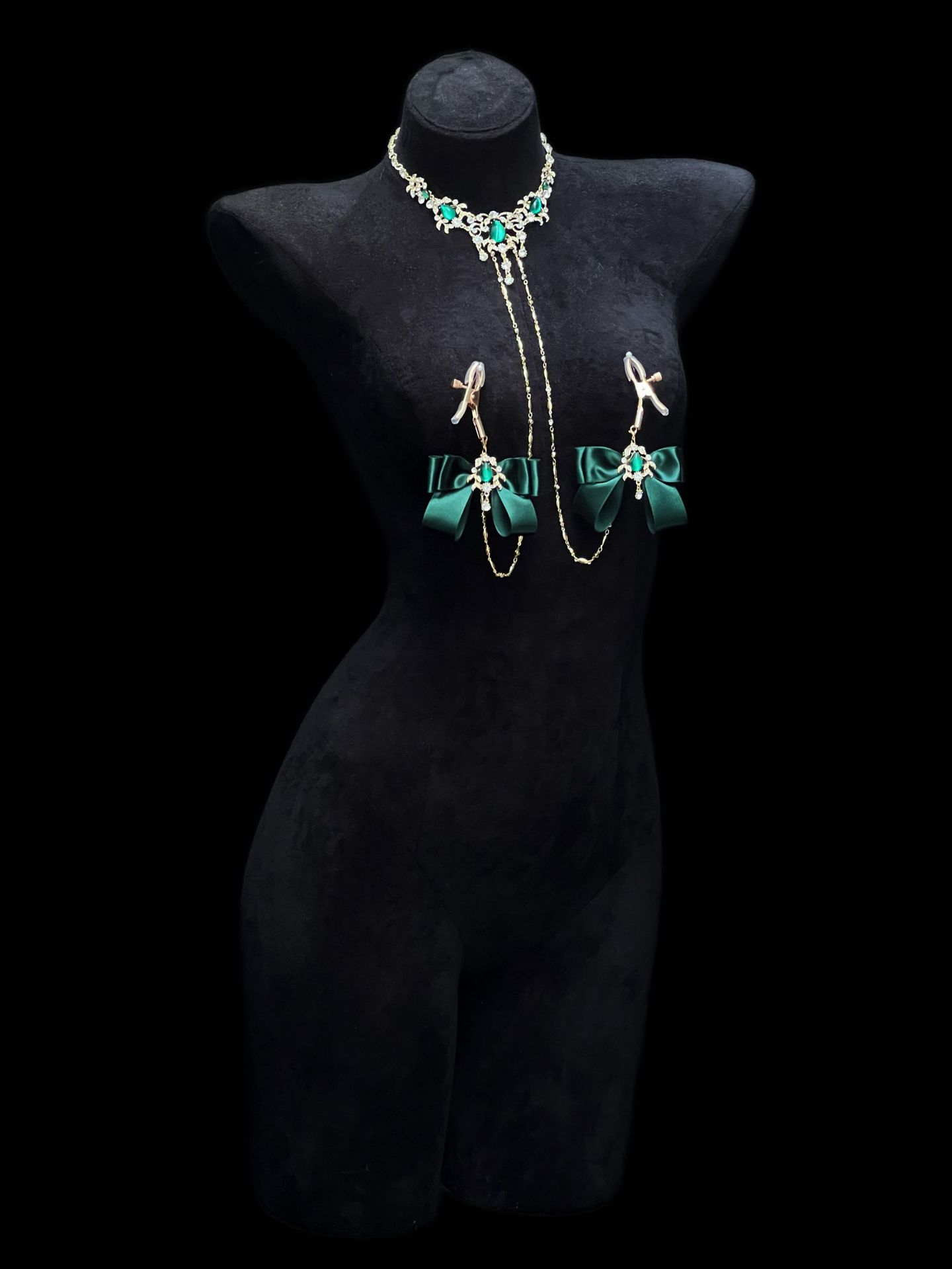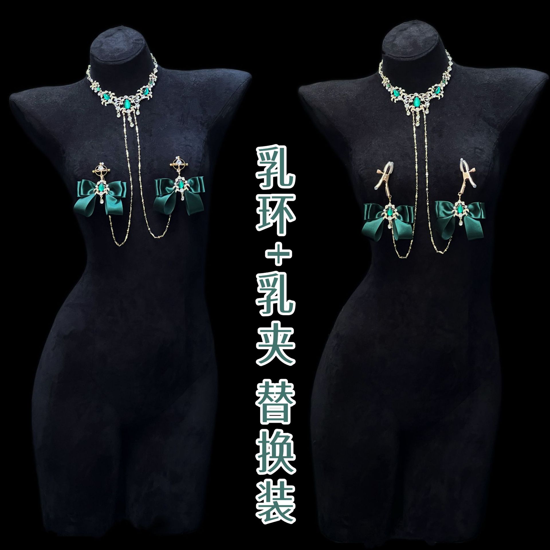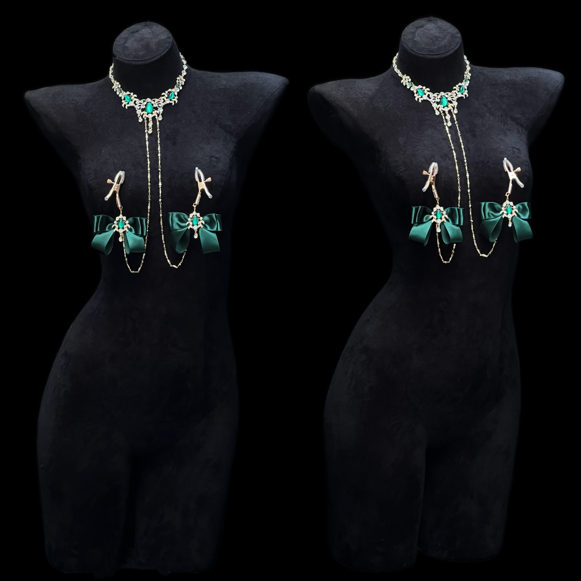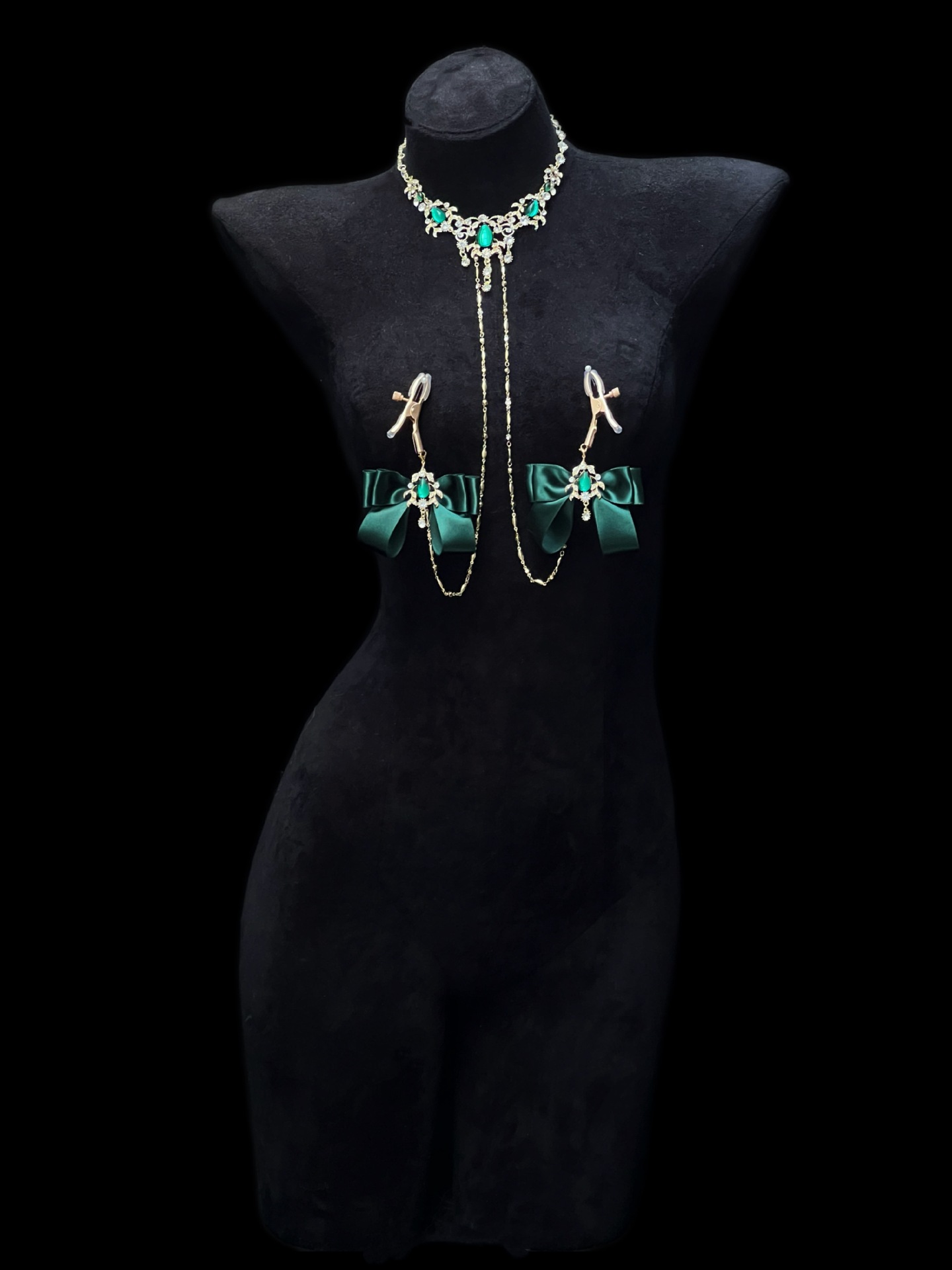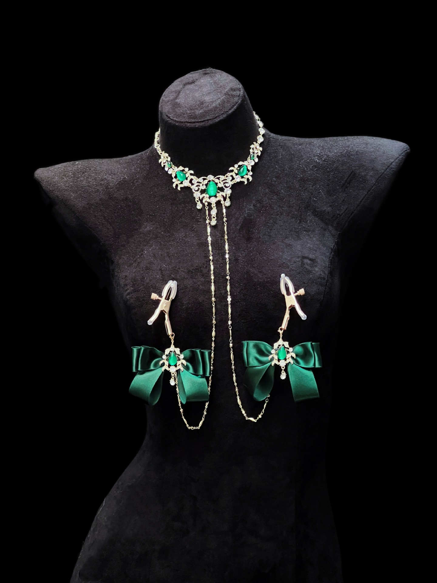 Be the first to review “Cuiying Original Design Retro Imitation Diamond Chest Chain with Dark Green Bows”