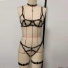 Sultry and sophisticated, Deer’s two-tone lingerie features intricate, heavy-industry strapwork for a bold, avant-garde look. This piece combines high fashion with intimate apparel, offering a unique, handcrafted aesthetic that elevates your lingerie collection.