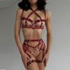 Explosive summer fashion: a bold, two-tone, five-piece lingerie set featuring intricate strap detailing and advanced construction for a unique, head-turning look.