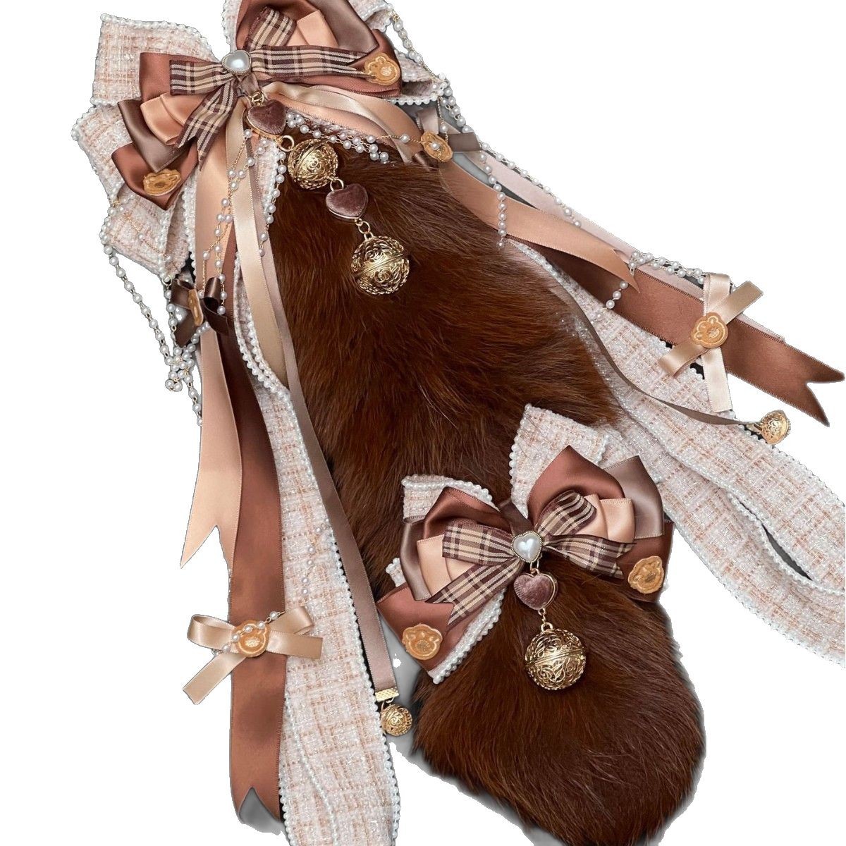 Dessert bear 40CM Fox real fur tail butt plug smsex toys handmade cute bow Palace Bell