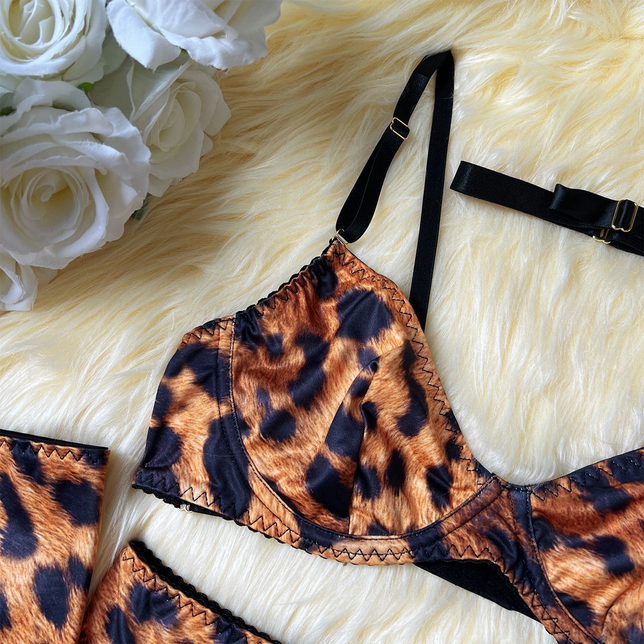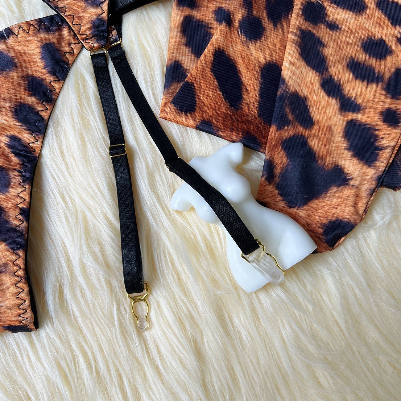 DIE European and American Ins Leopard Print Lingerie Piece Set New Tie-Dye Sexy Lingerie Sexy Kit