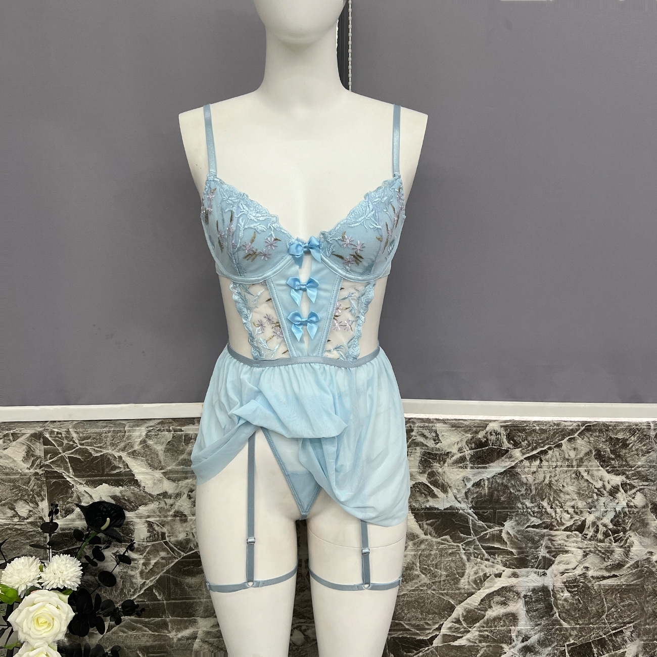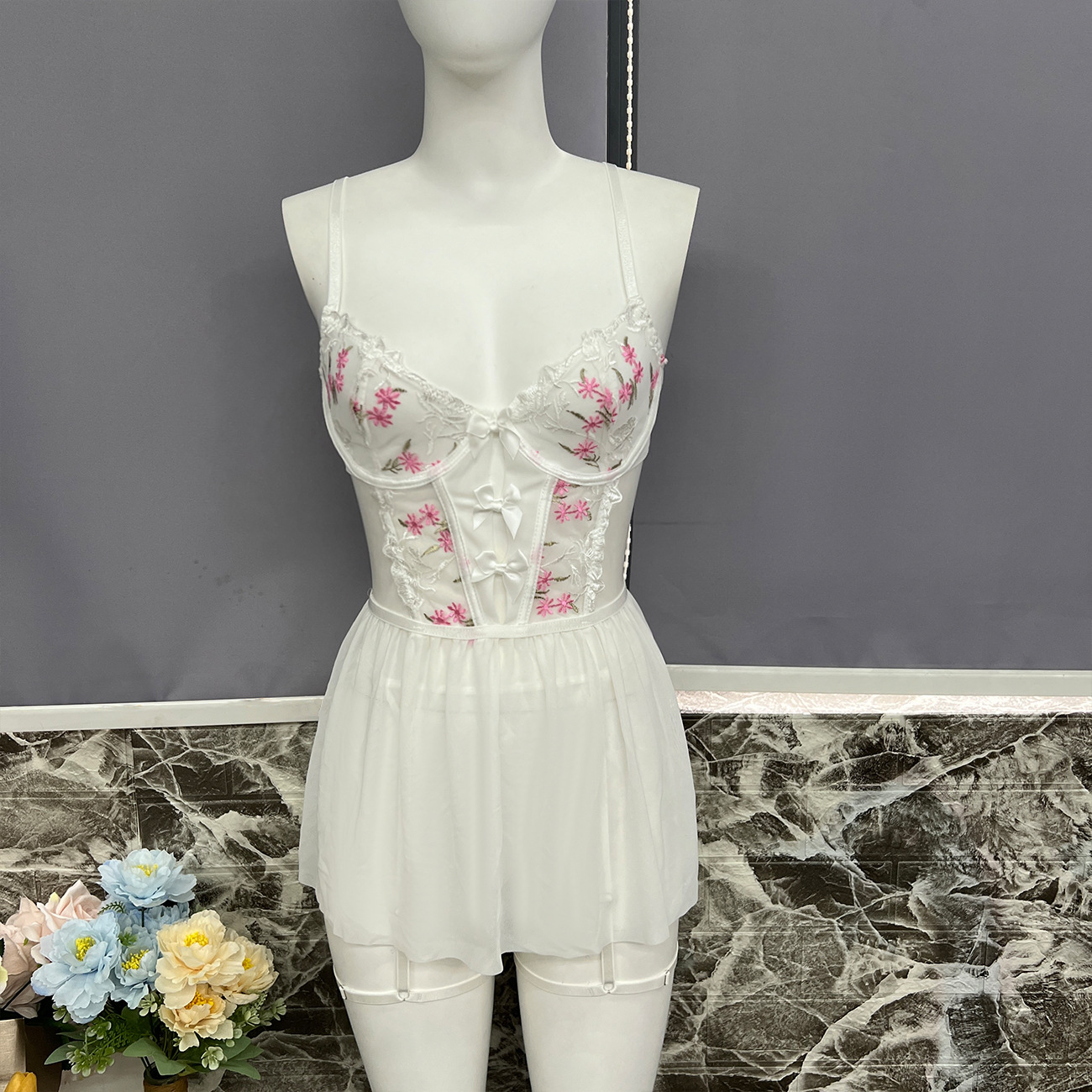 Indulge in the allure of European and American design with the DIER Embroidered Mesh Lingerie Set. This exquisitely crafted two-piece set is designed to empower and captivate, offering a perfect blend of sensuality and sophistication.