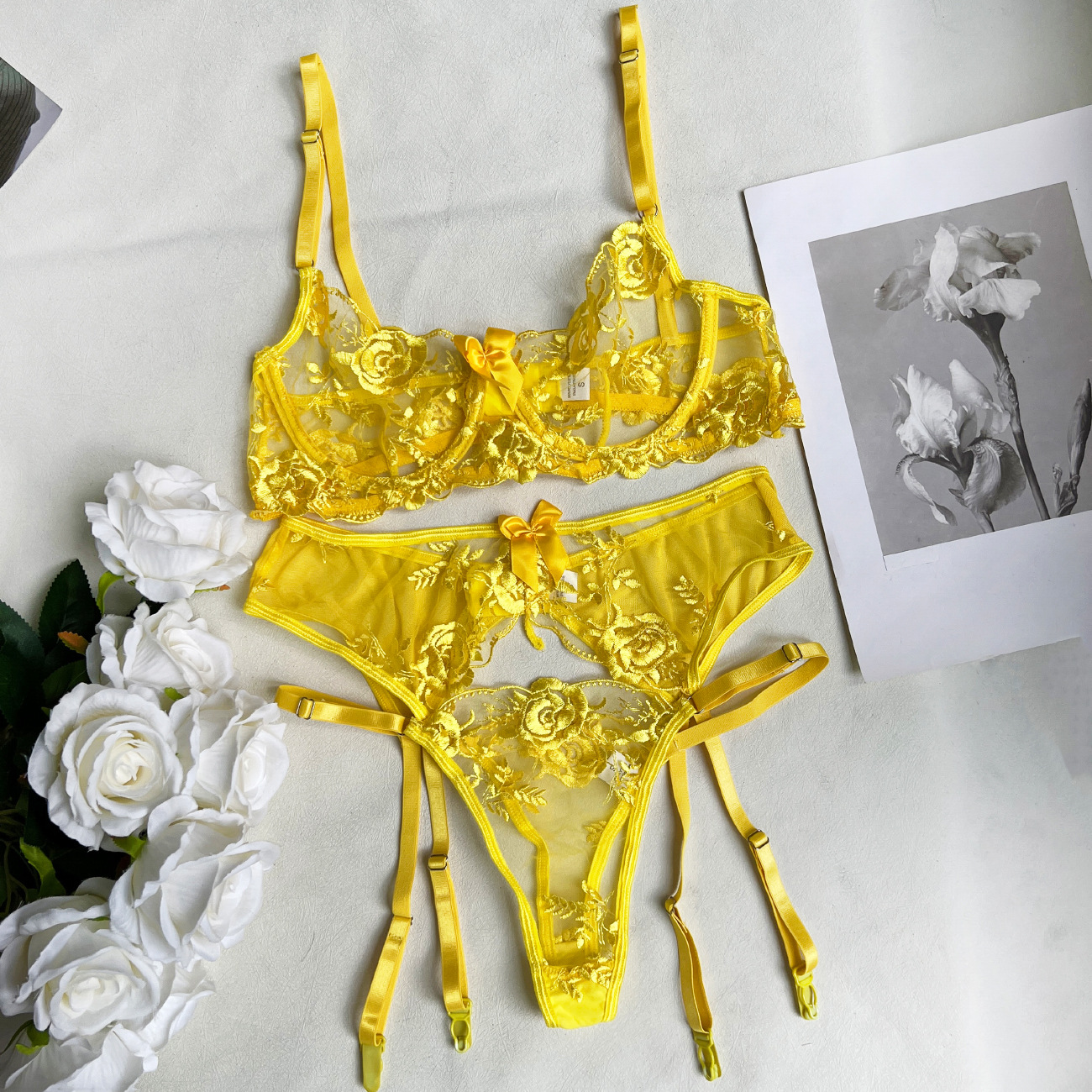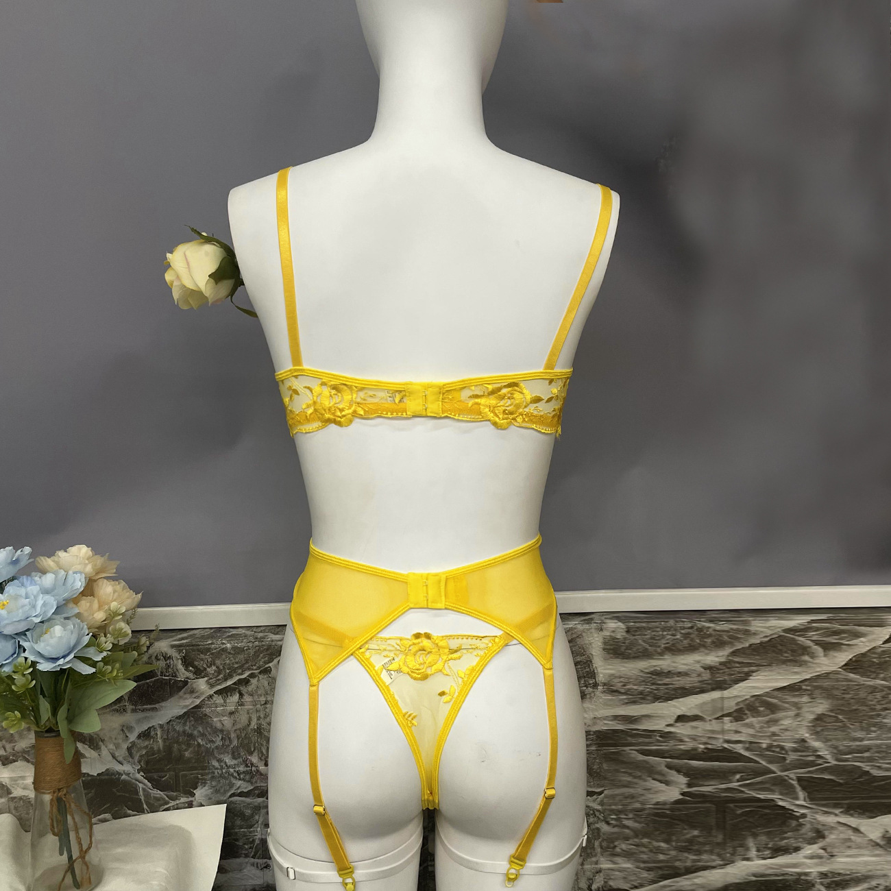 Dier Fashion’s lingerie set combines European and American styles with heavy industry star embroidery for a bold, sexy look. The lace-up sling design offers adjustable comfort and accentuates curves, making it a unique and alluring statement piece.