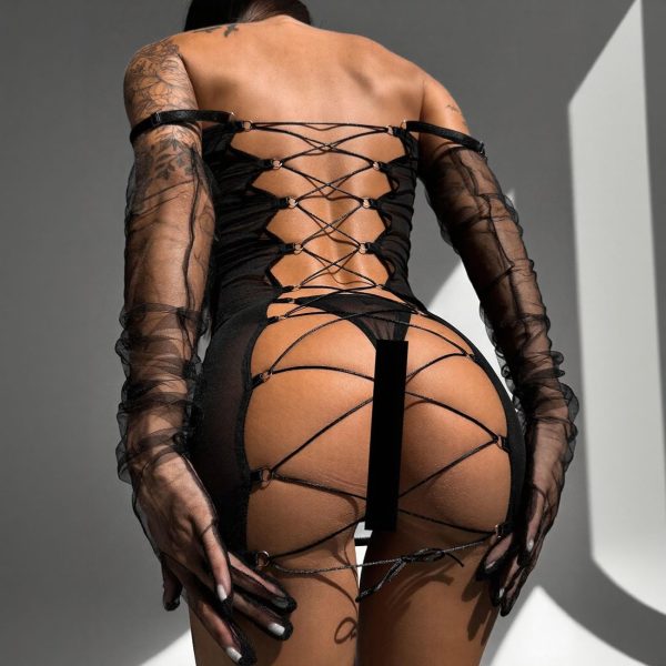 Dier Strap Mesh Back Tight-Fitting See-Through Dress Suspender Sexy Lingerie