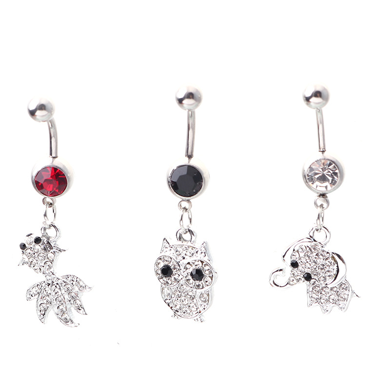 Europe and the United States cross-border high sense diamond-studded owl elephant goldfish navel nail suit sexy animal navel accessories