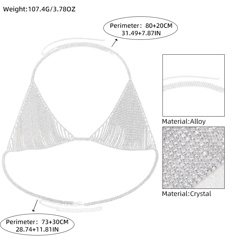 Dazzle at your next party with this flash diamond chest chain! This sexy body chain elevates any bikini or swimwear, adding a touch of sparkle and allure perfect for nightclubs and parties. Its unique design guarantees you’ll stand out and make a statement.