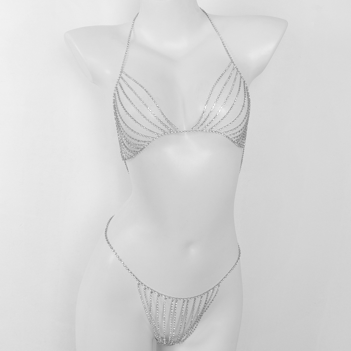 Turn heads with this dazzling rhinestone body chain! Perfect for nightclubs and parties, this sexy bikini-style chest chain adds instant glamour and an exaggerated, eye-catching edge to any outfit. Be the center of attention with this hot fashion accessory that screams confidence and elevates your look.