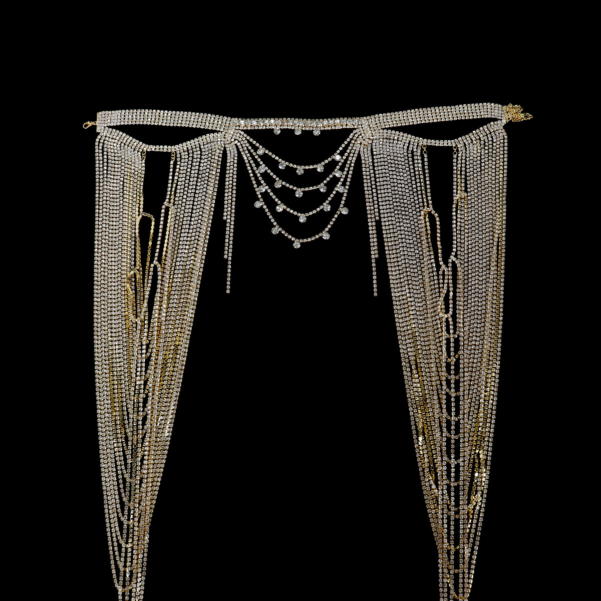 Dazzling rhinestone body chain, blending European and US trends, elevates any look with multi-layered tassels and full diamond sparkle. Perfect for banquets or adding a touch of sexy glamour, this statement piece guarantees to turn heads and exude confidence.
