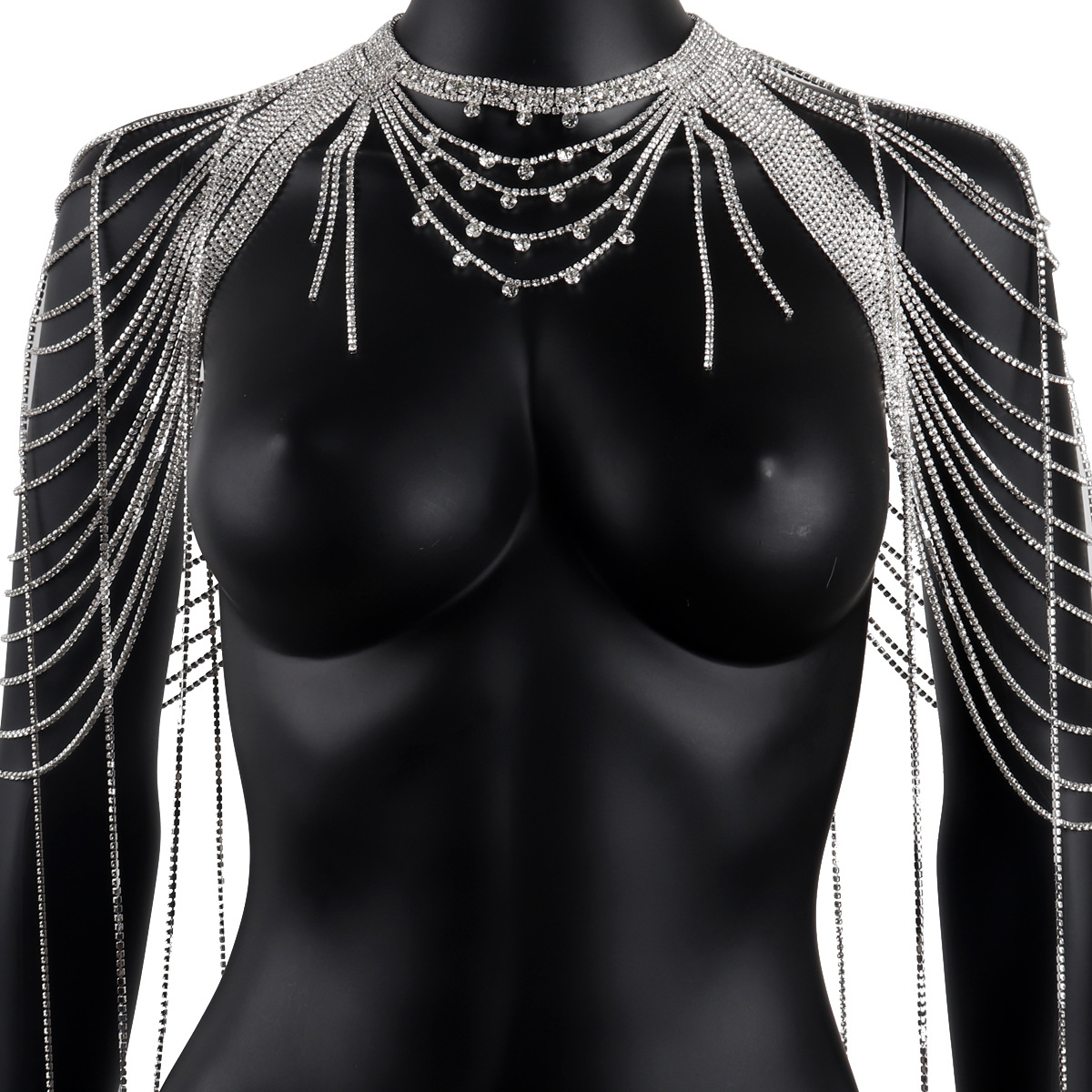 This multi-layered tassel shoulder chain is designed to accentuate your natural curves and elevate any outfit. Picture the cascading tassels gracefully adorning your shoulders, adding a touch of playful elegance to your look. Crafted with premium-quality rhinestones, this body chain boasts exceptional sparkle and durability, ensuring it remains a cherished piece in your collection for years to come.