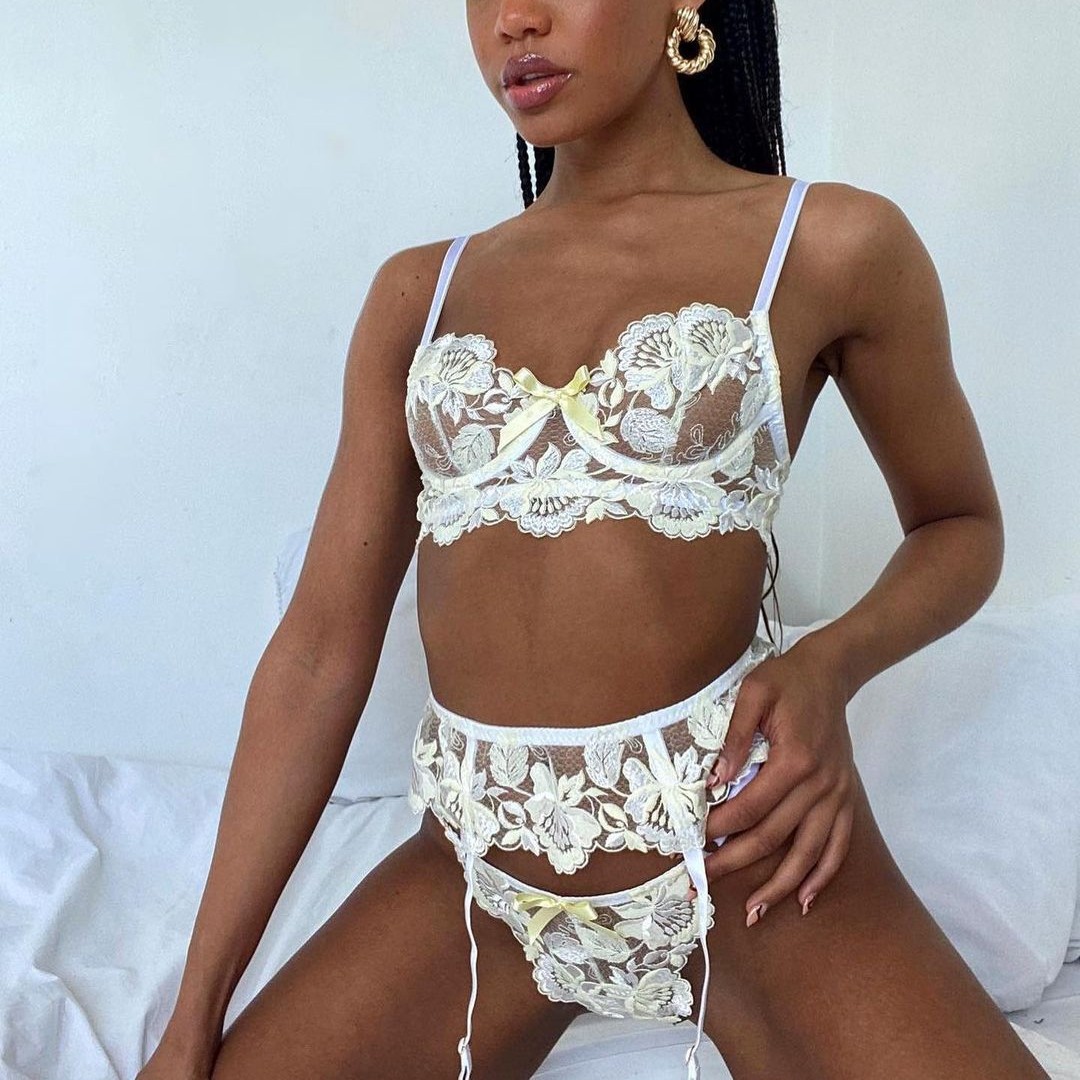 Lace Garter Lingerie Set: Sexy Embroidered 3-Piece Underwear – Europe & US