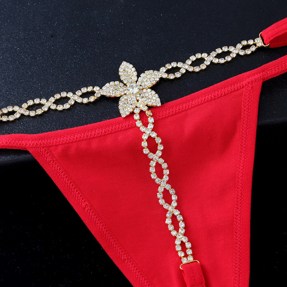 Dare to dazzle with the European and American Best-Selling Diamond Floral Thong Women’s Sexy Nightclub Rhinestone Chain Underwear Body Chain. This isn’t just lingerie; it’s a statement. It’s confidence embodied in shimmering rhinestones and delicate floral accents, designed to transform you into the center of attention.