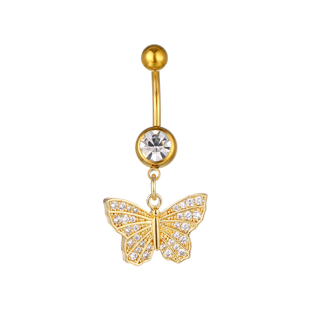 European and American Butterfly Inlaid 3A Zircon Naples Women’s Human Body Prick Navel Ring