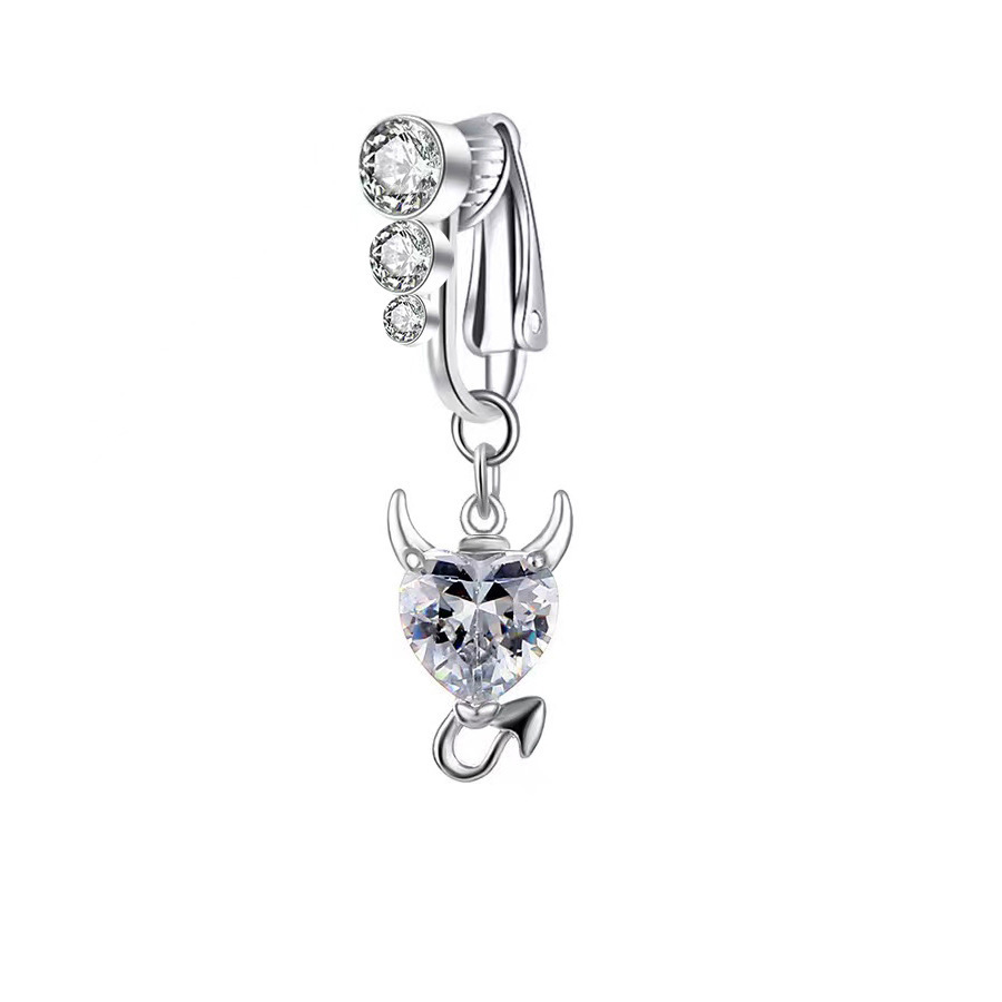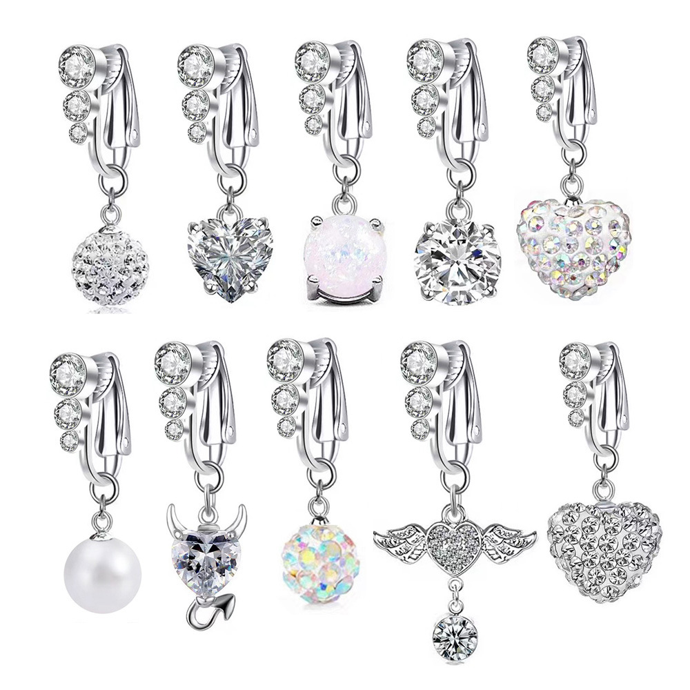 European and American goods three diamond navel clip punch-free Pearl navel ring heart-shaped ball diamond-embedded navel buckle jewelry
