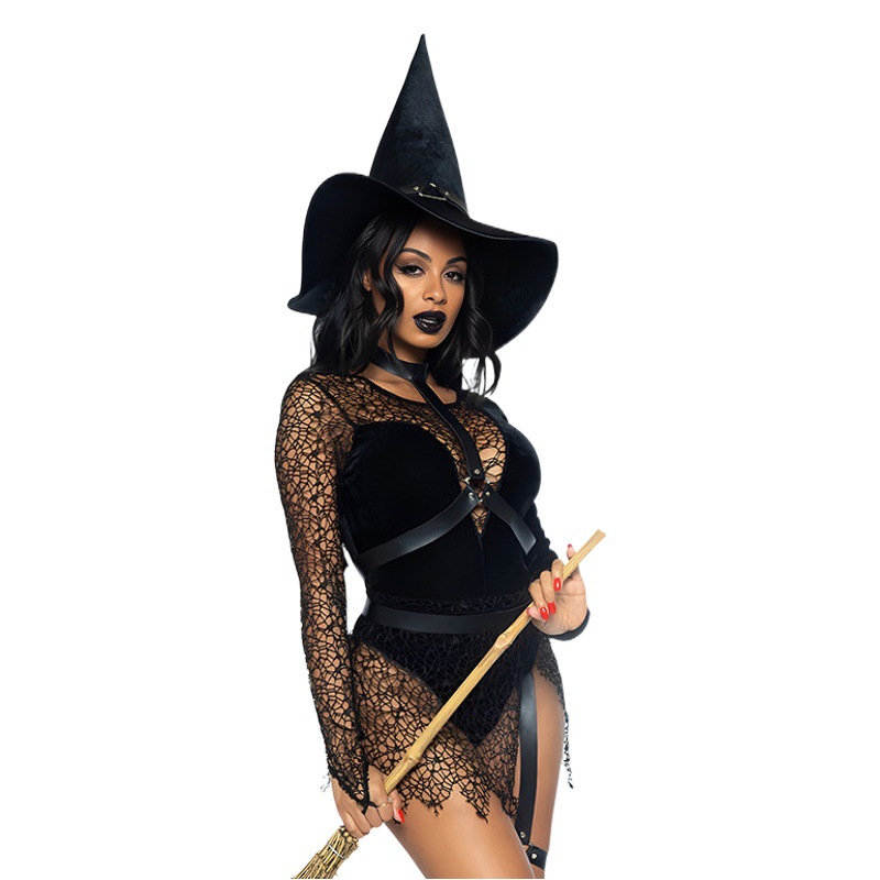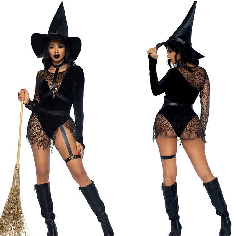 Dare to be Different: Forget predictable costumes. This ensemble blends classic witch aesthetics with a modern, seductive twist, drawing inspiration from both European folklore and American pop culture interpretations of the demonic.