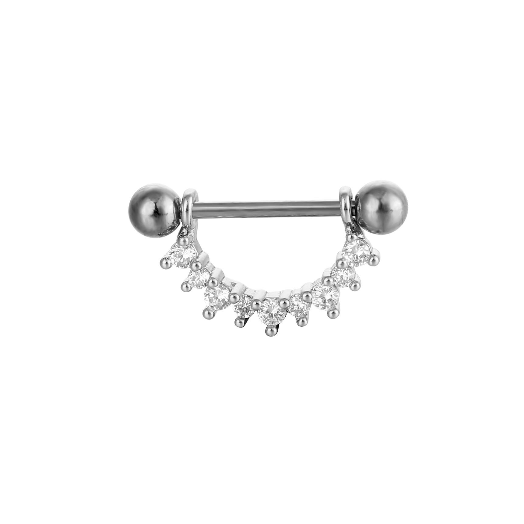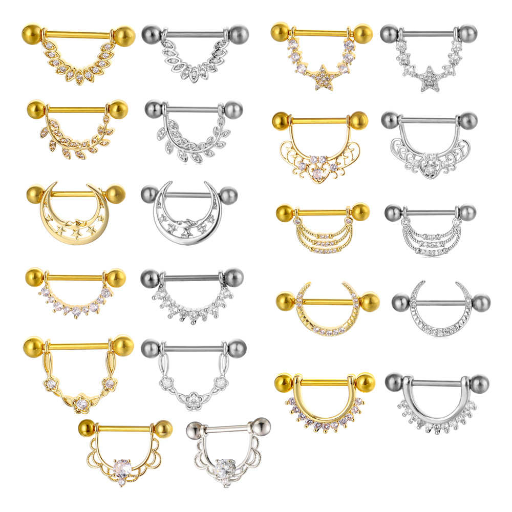 Elevate your intimate style with these European and American hot-selling nipple rings. Featuring sparkling zircon inlays, these nipple nails are crafted for cross-border appeal and designed to add a touch of glamour to your look. Perfect for those seeking a bold and beautiful body modification.