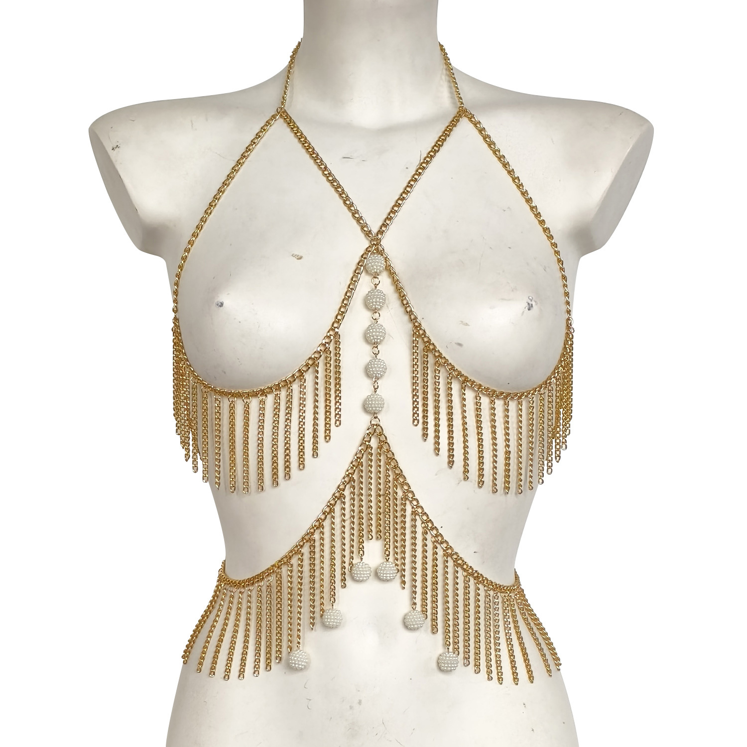 Sexy Pearl Tassel Body Chain: Hollow Chest Jewelry for Women