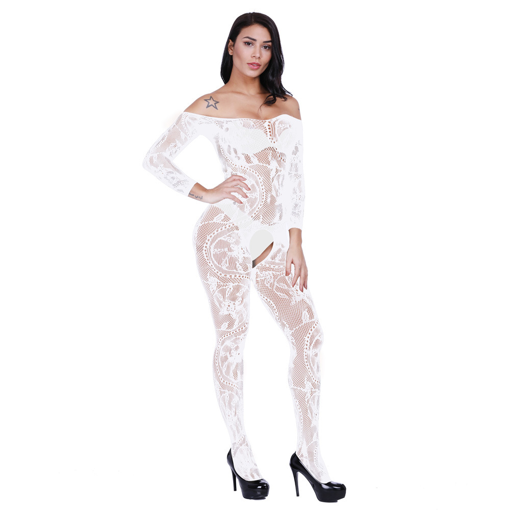 Seductive Open Crotch Silk Stocking Bodysuit Lingerie